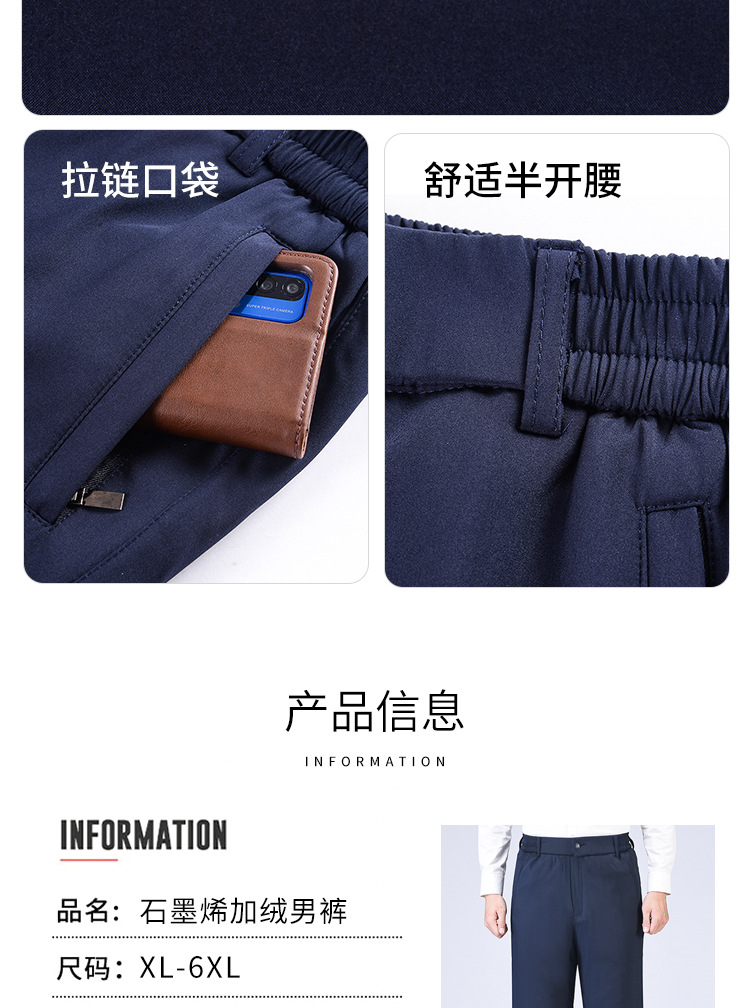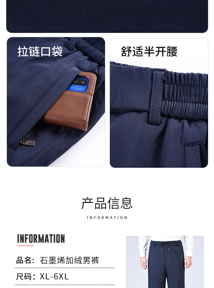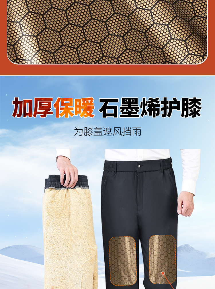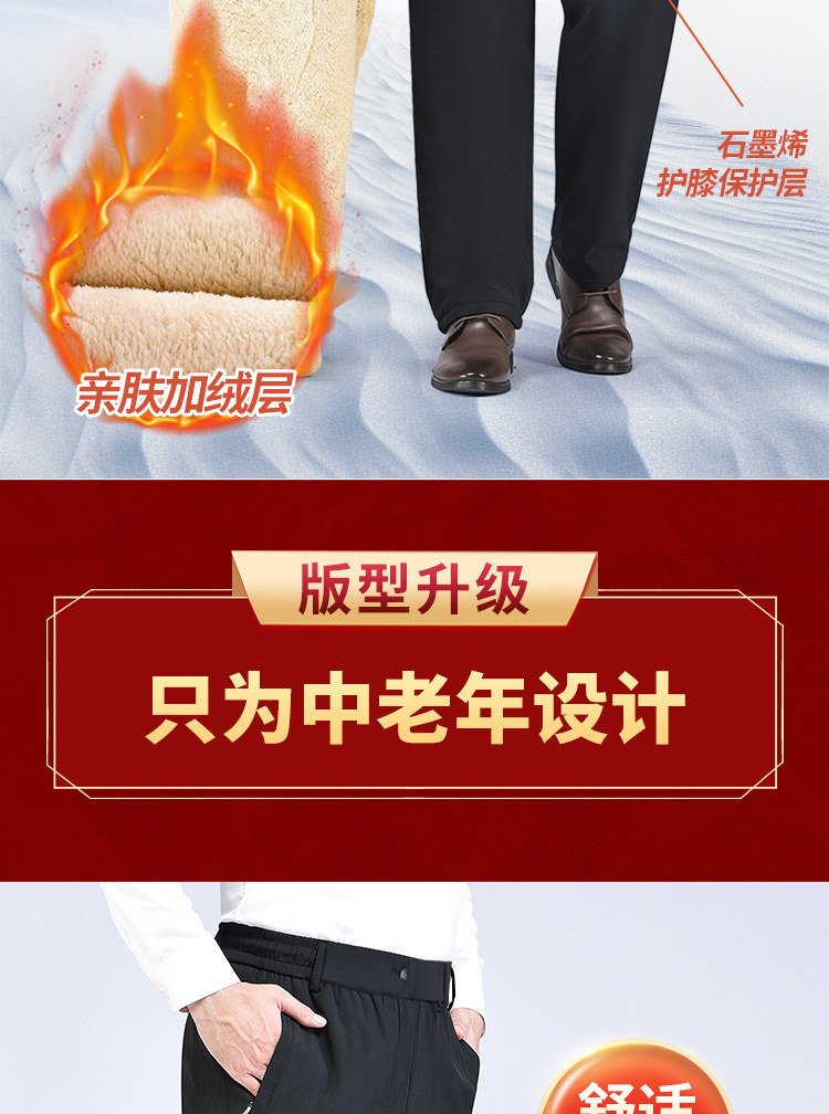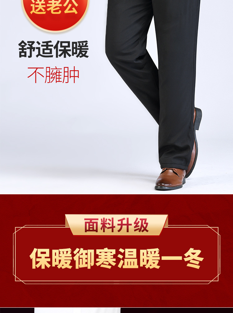 중노년 남성용 루즈핏 하이웨이스트 딥카프 그래핀 플러스 벨벳 두꺼운 보온 오픈웨이스트 캐주얼 바지스토어 가기
