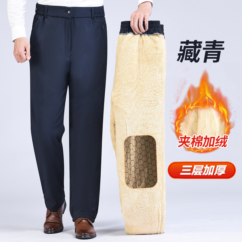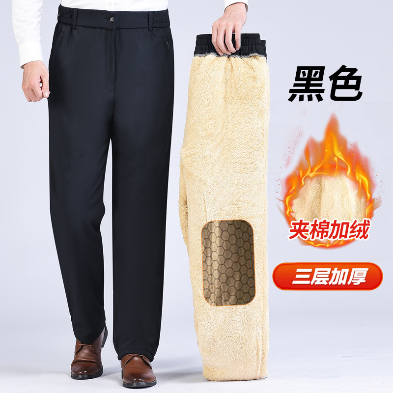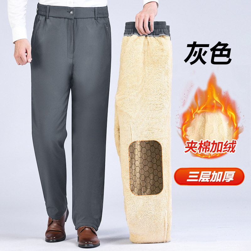 중노년 남성용 루즈핏 하이웨이스트 딥카프 그래핀 플러스 벨벳 두꺼운 보온 오픈웨이스트 캐주얼 바지