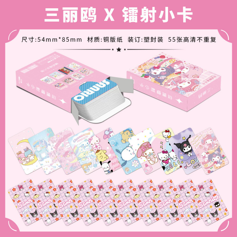 산리오 레이저 카드 55 유구이 개 파르키아 개 귀여운 만화 주변 폴라로이드 플래시 카드 로모 카드