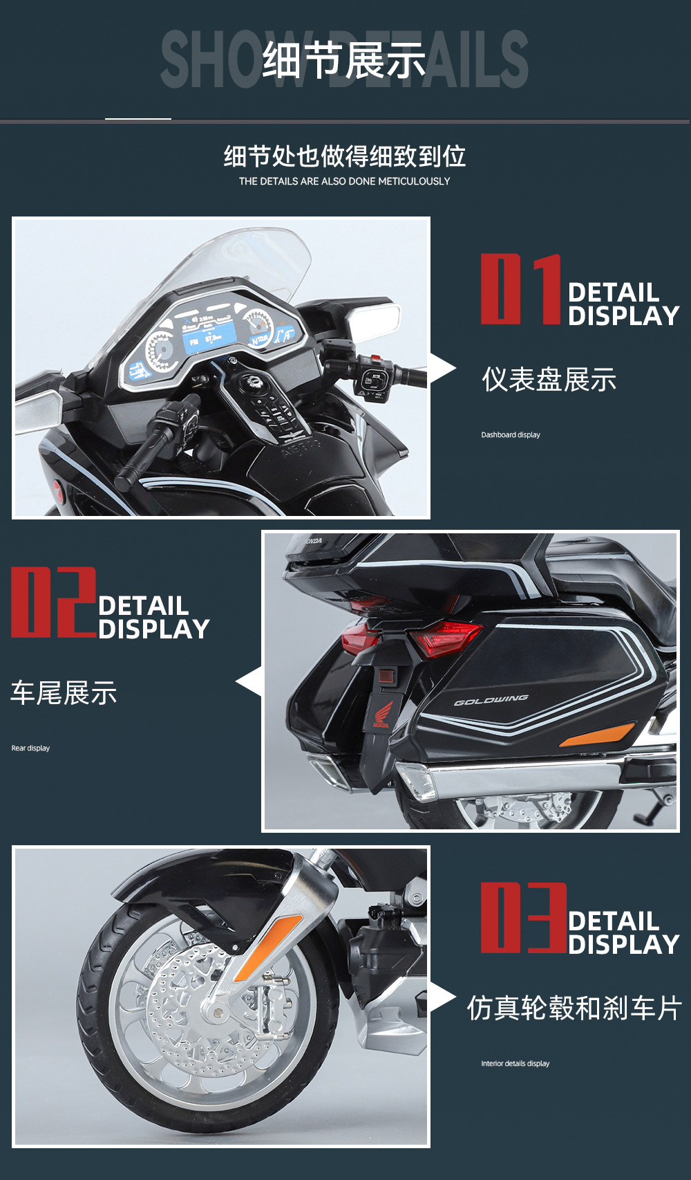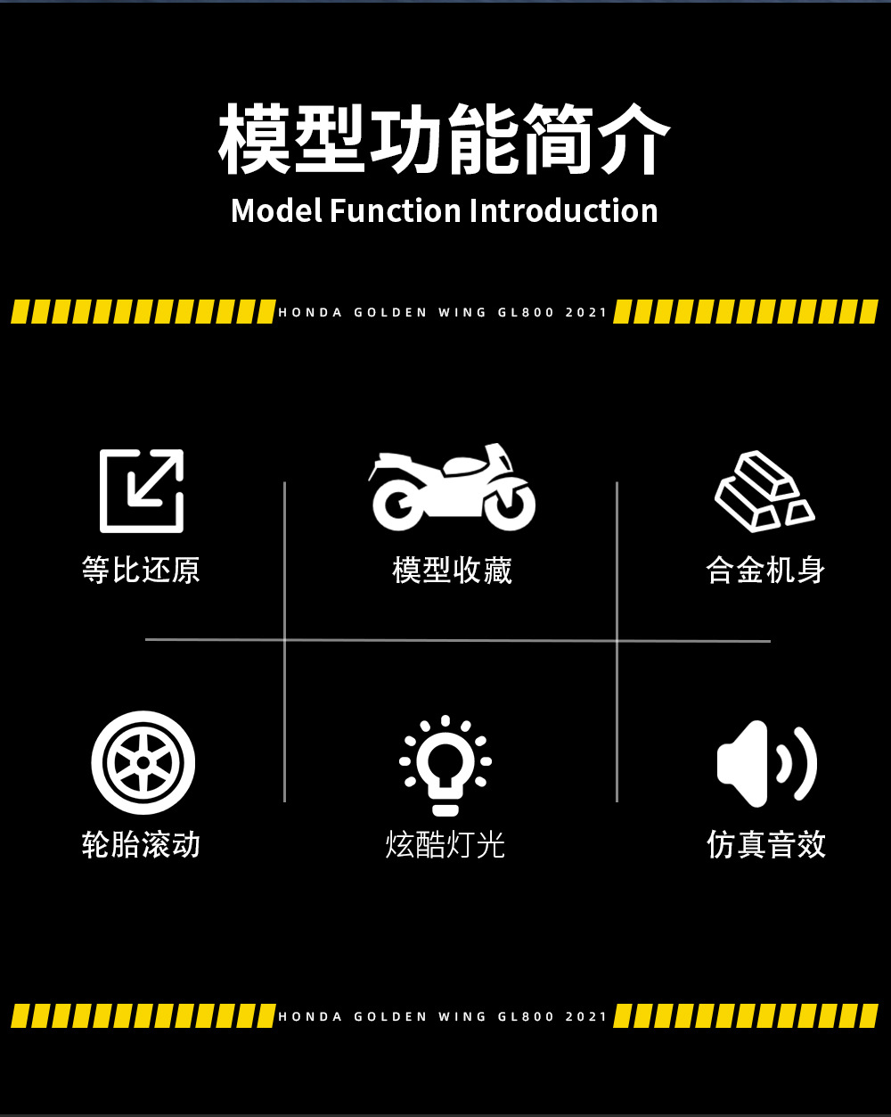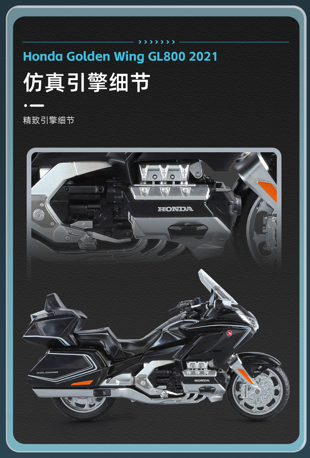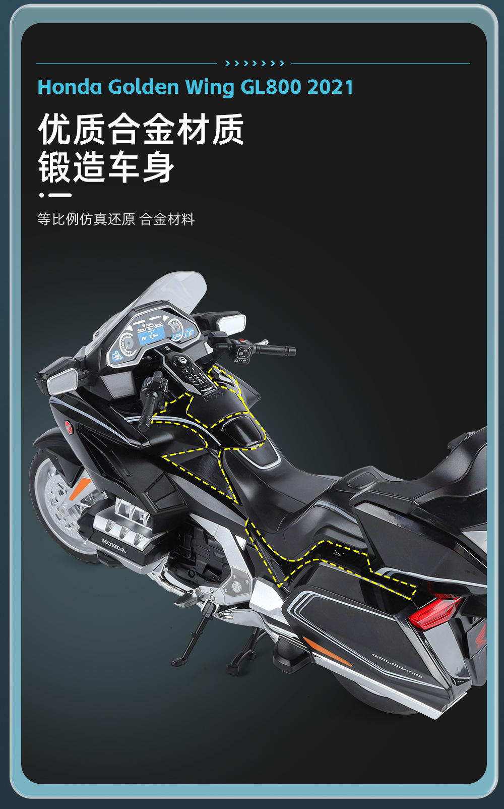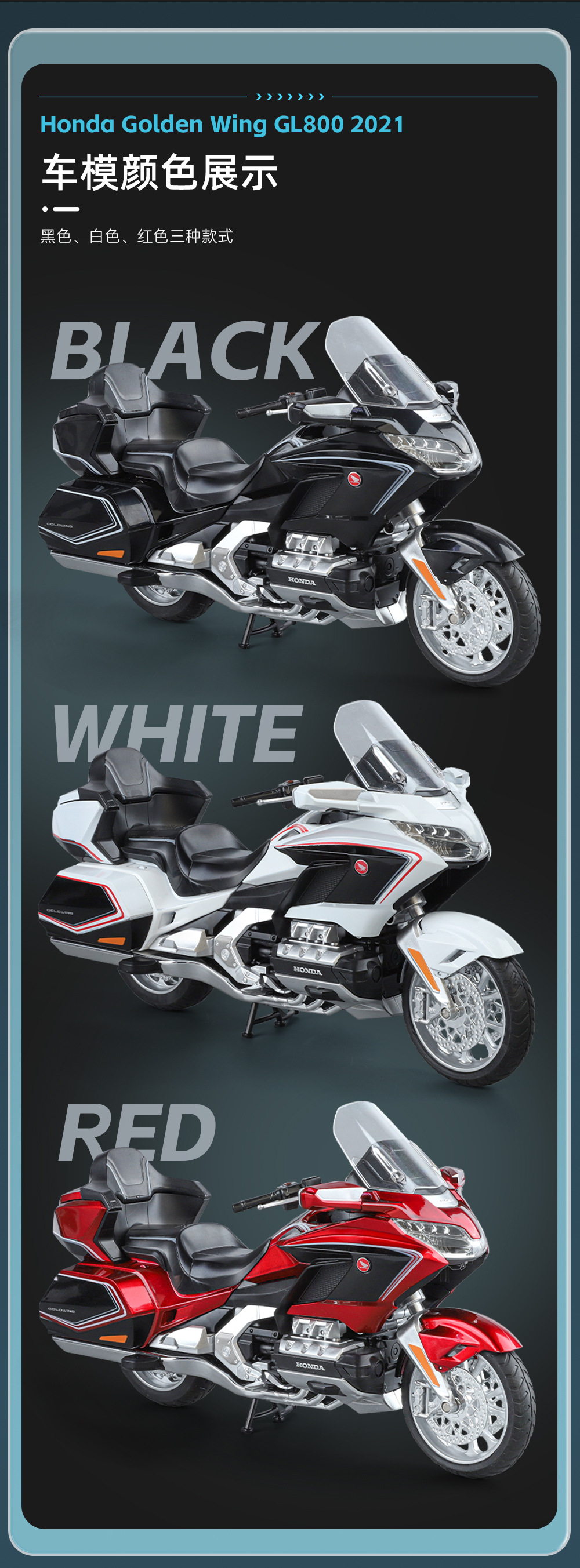 국경 간 무역 블랙 맘바 H9021 박스형 혼다 골드윙 오토바이 1/11 시뮬레이션 어린이용 사운드 및 라이트 합금 모델