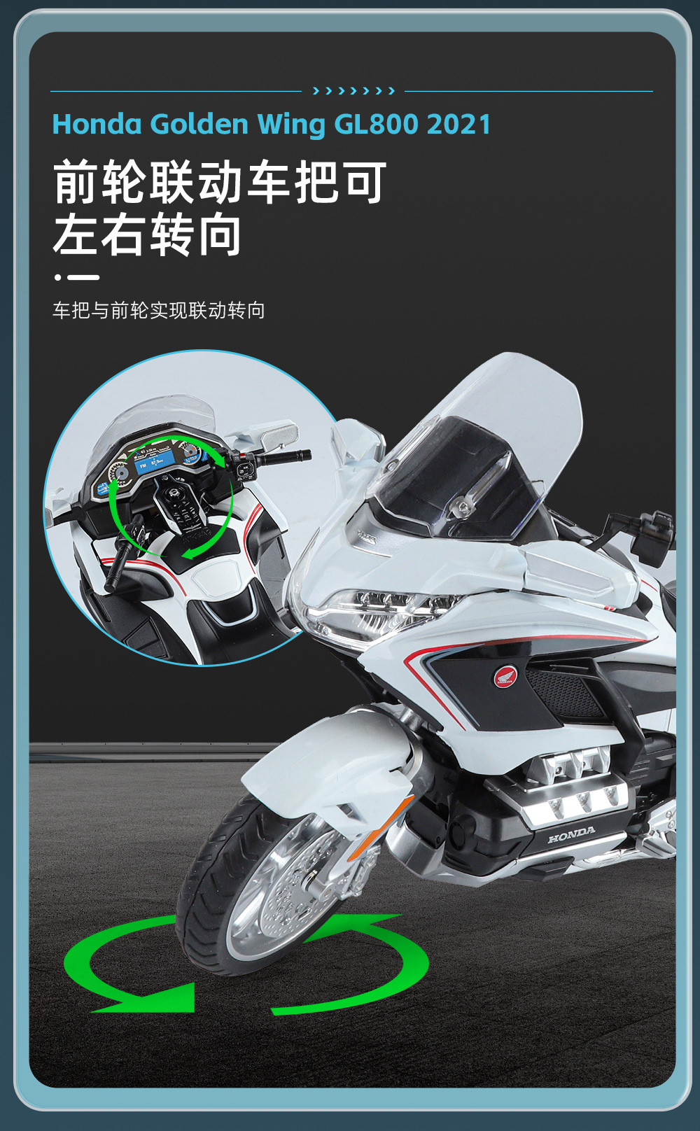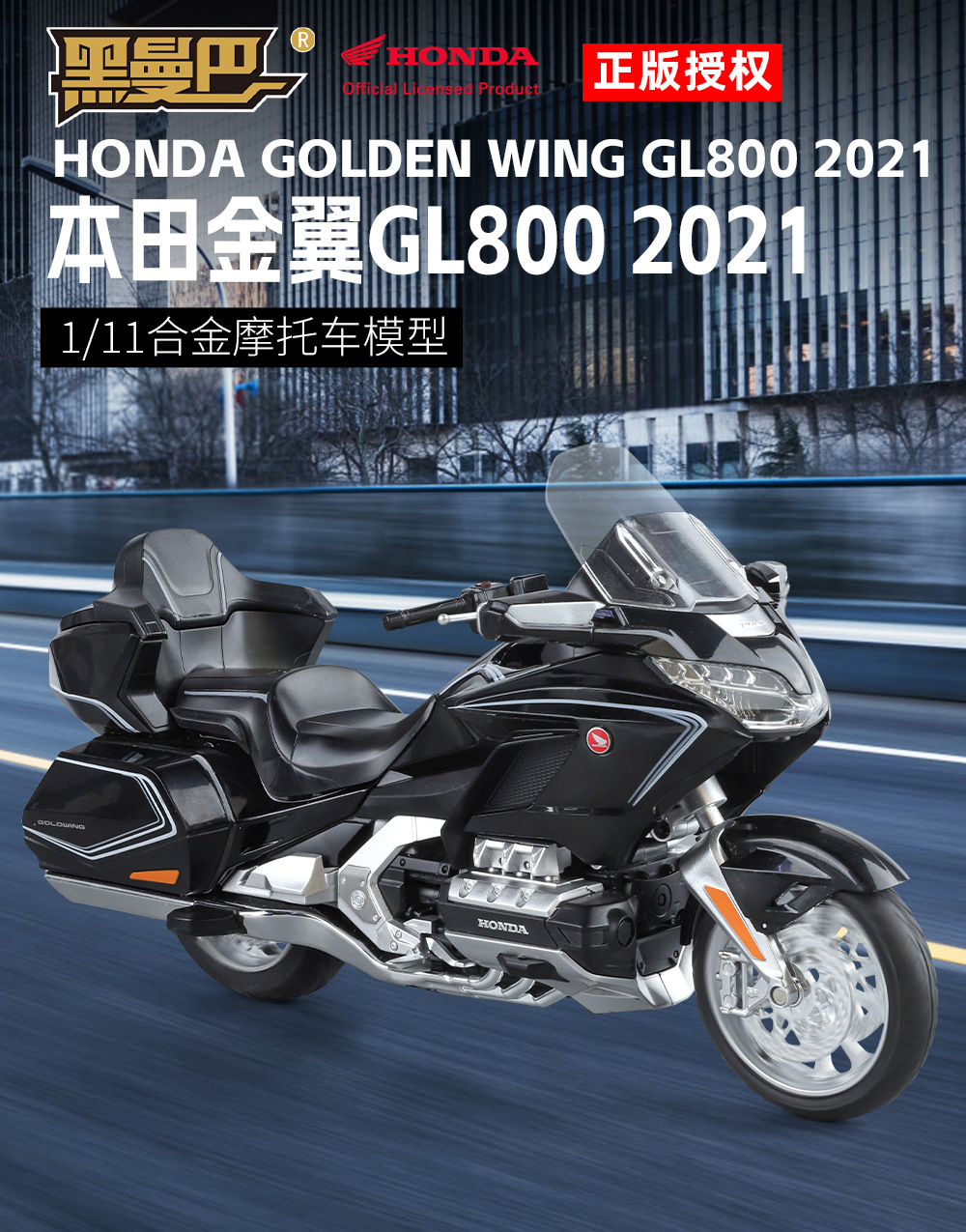 국경 간 무역 블랙 맘바 H9021 박스형 혼다 골드윙 오토바이 1/11 시뮬레이션 어린이용 사운드 및 라이트 합금 모델스토어 가기