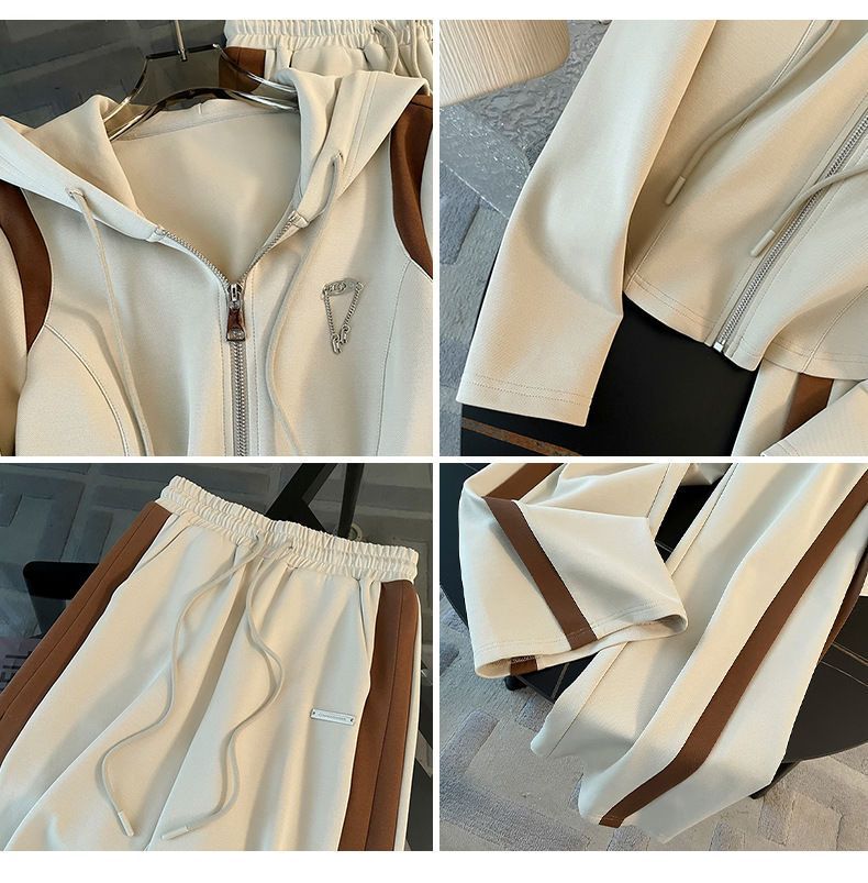 유럽 상품 튀김 거리 캐주얼 스포츠 세트 여성의 가을 새로운 서양 스타일 슬림 대비 후드 넓은 다리 바지 투피스 세트
