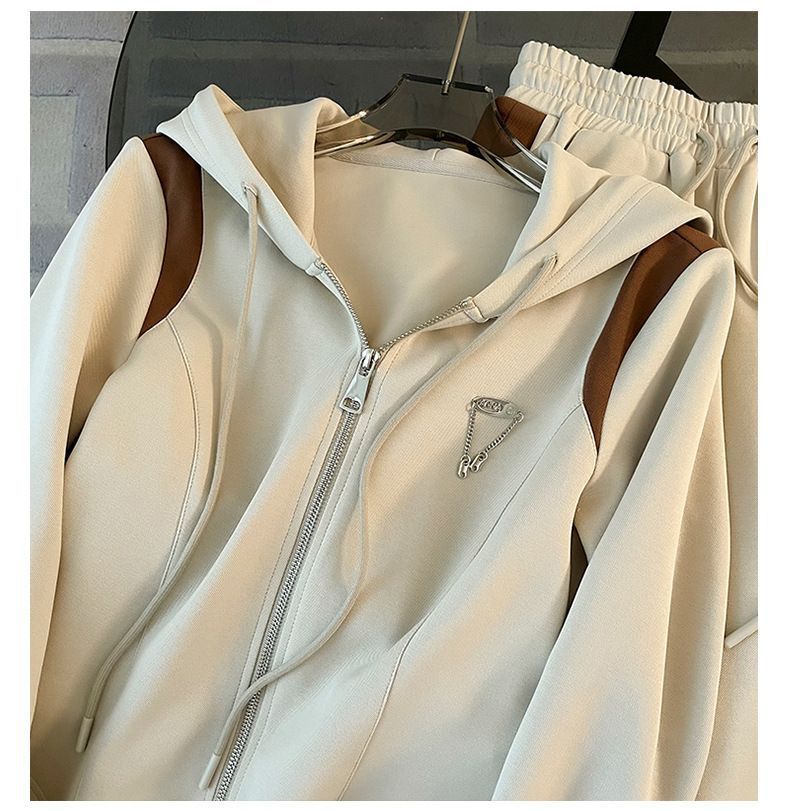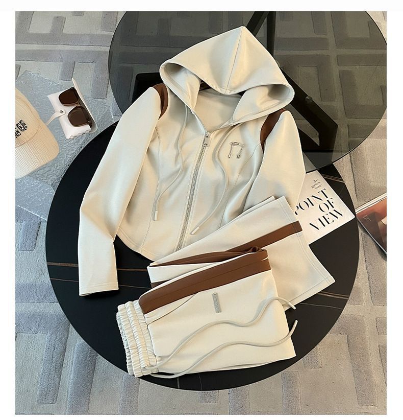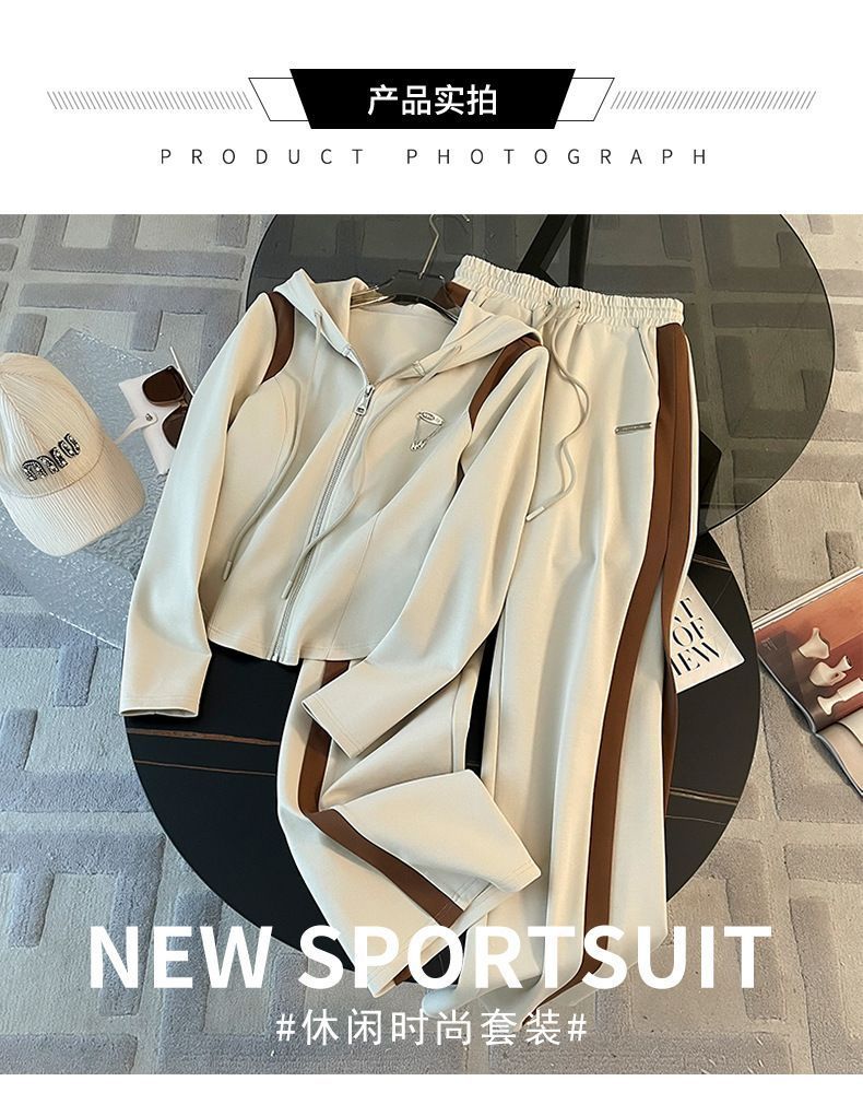 유럽 상품 튀김 거리 캐주얼 스포츠 세트 여성의 가을 새로운 서양 스타일 슬림 대비 후드 넓은 다리 바지 투피스 세트스토어 가기