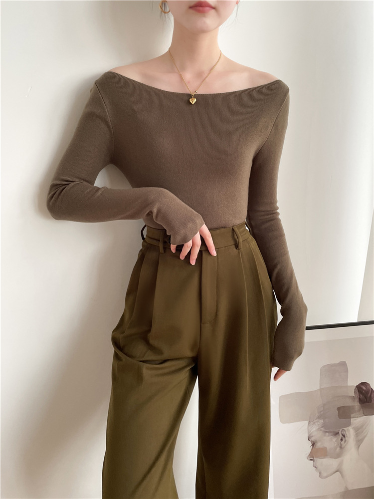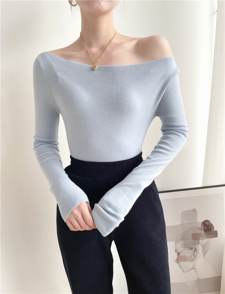 가을과 겨울 스트레치 캐시미어 칼라 어깨 슬림 핏 슬림 핏 스웨터 솔리드 컬러 풀오버 이너베이스 탑 여성용 탑