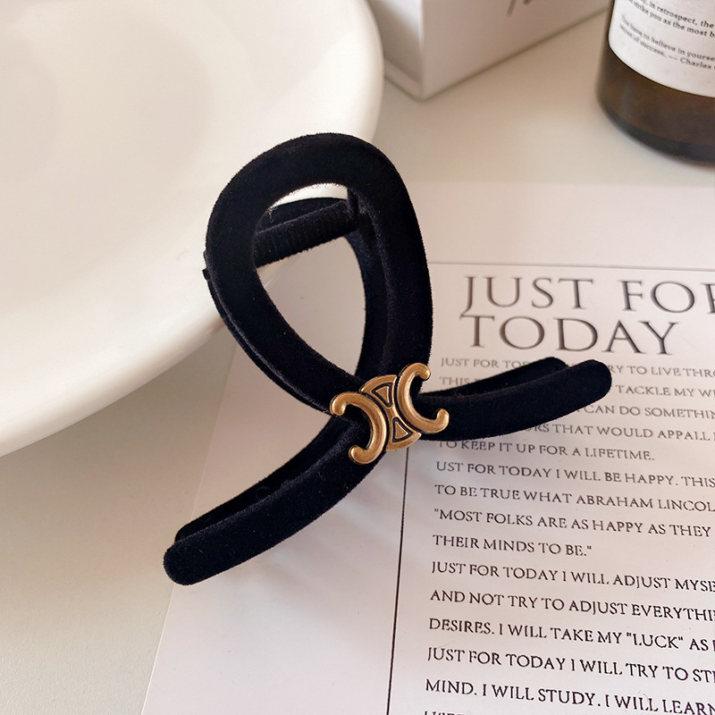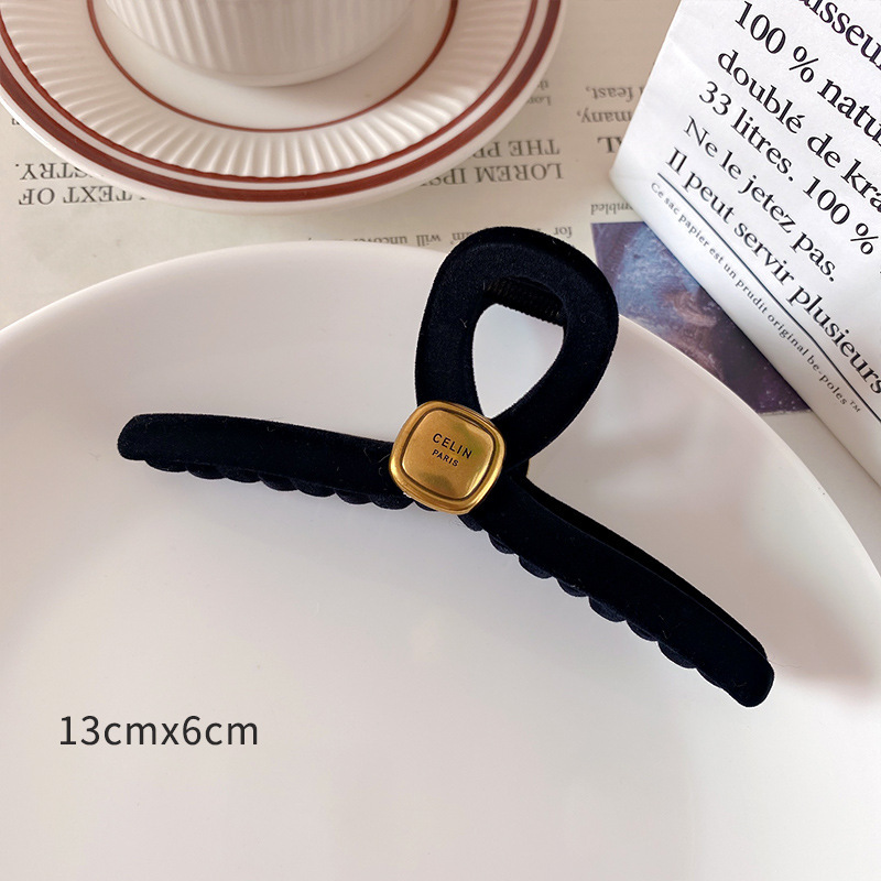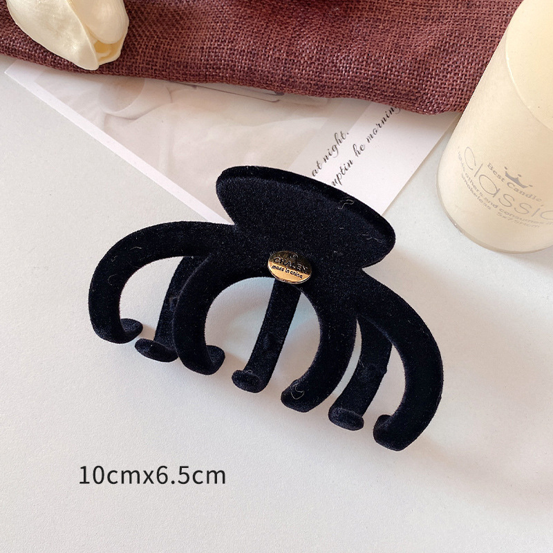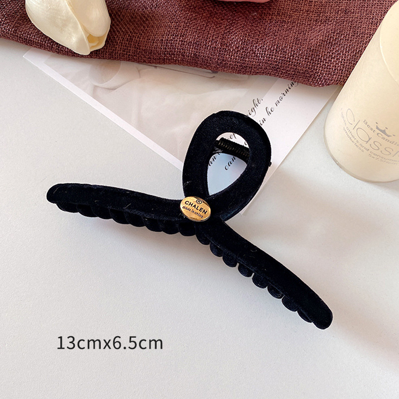가을과 겨울 블랙 하이 엔드 벨벳 그랩 클립 여성용 등 머리 상어 클립 올 매치 잠금 헤어 스타일 우아한 헤어 잡아 헤어 액세서리