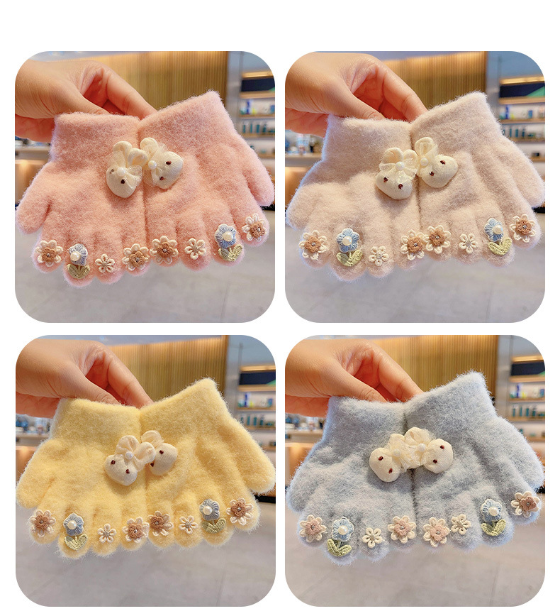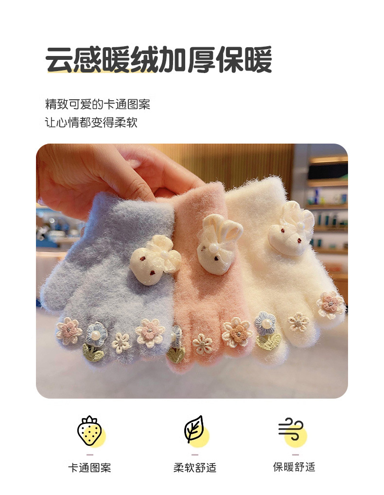 만화 꽃 토끼 봉제 장갑 어린이 귀여운 올 매치 새로운 스타일 따뜻한 기모 가을과 겨울에 남자와 여자를 위해 두껍게스토어 가기