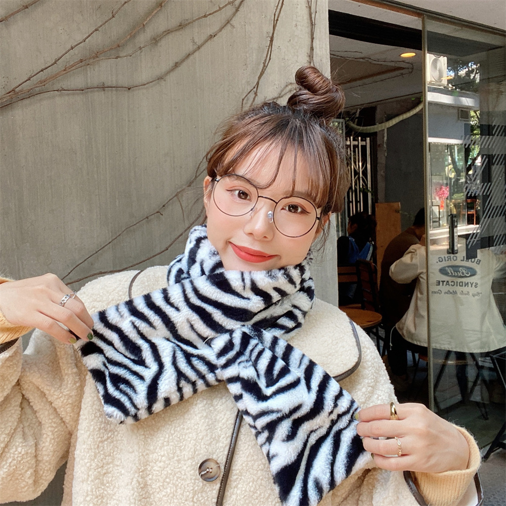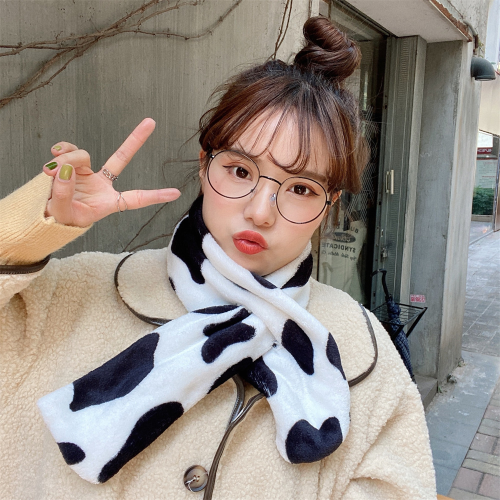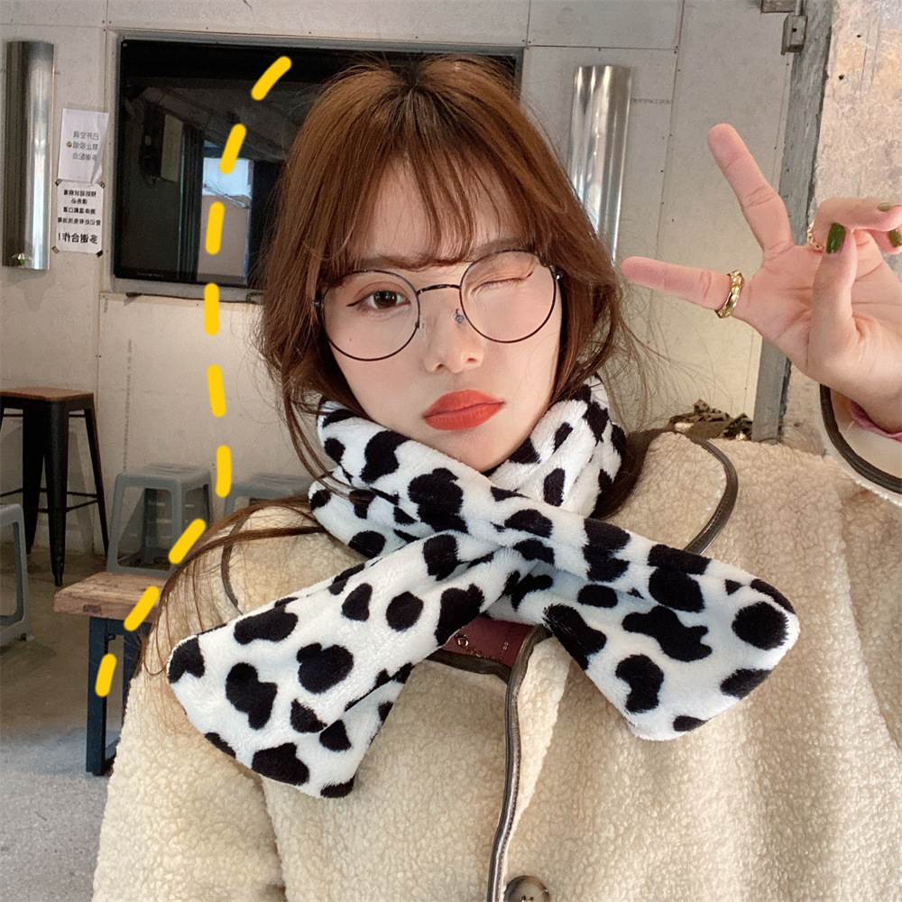 011284 겨울 한국 스타일 올매치 따뜻한 방풍 젖소 인쇄 레오파드 무늬 모방 토끼 모피 부드러운 봉제 스카프