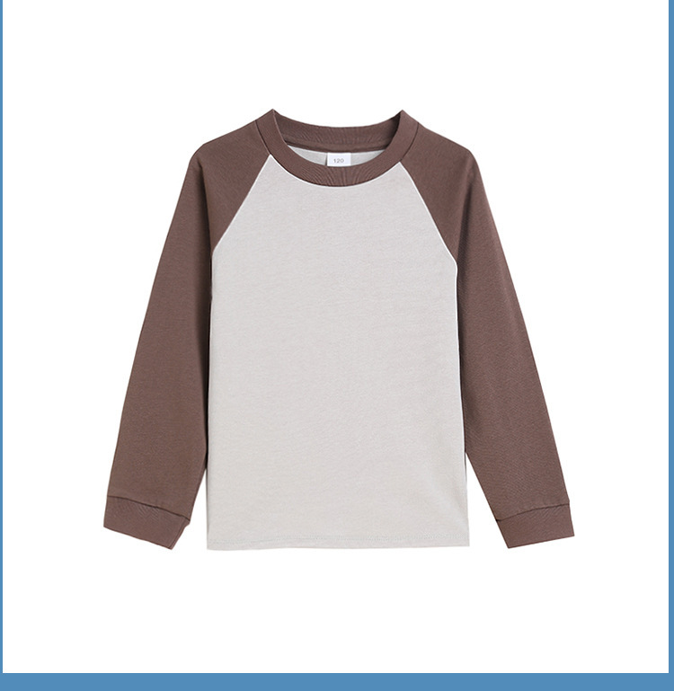 아동용 래글런 긴팔 한국 스타일 루즈핏 헤비 코튼 티셔츠 남아용 라운드넥 순면 이너웨어 중대형 아동용스토어 가기