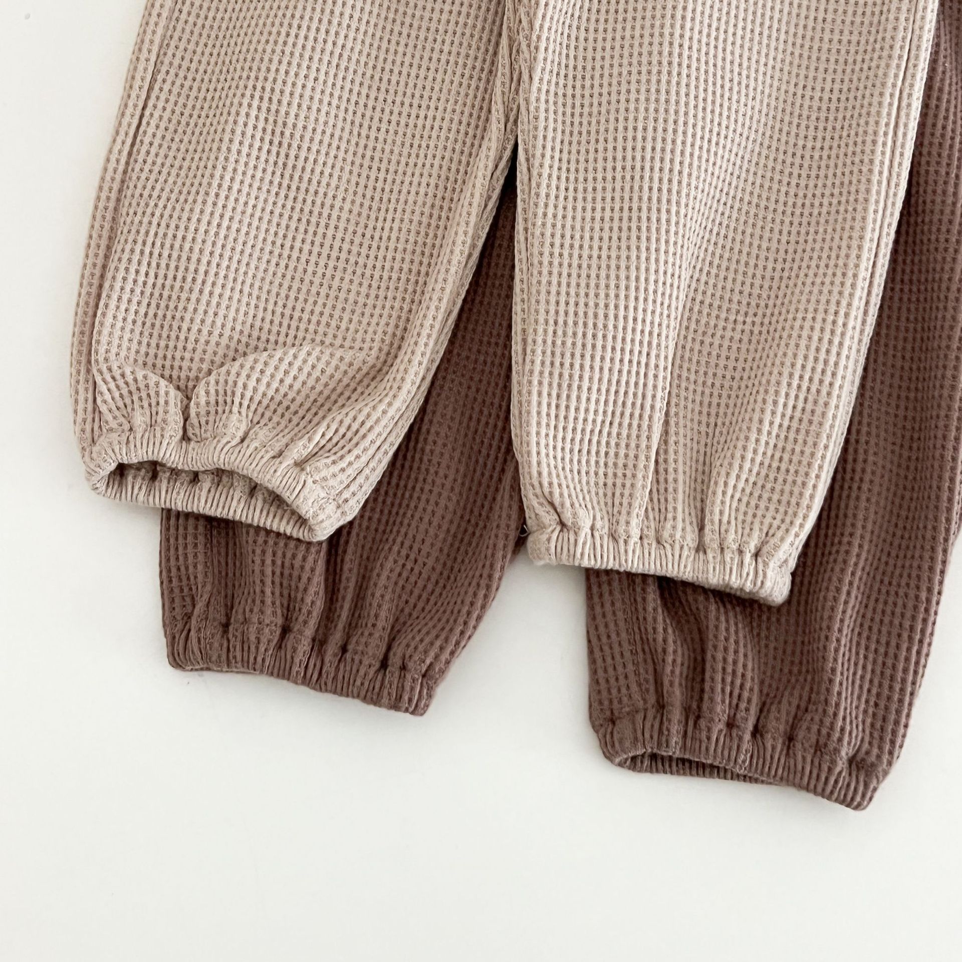 한국식 아동복 봄과 가을 아기 소년과 소녀 캐주얼 느슨한 와플 세트 긴 소매 티셔츠 바지 두 조각스토어 가기