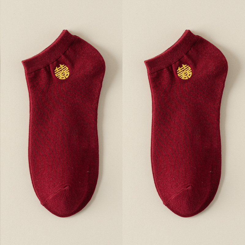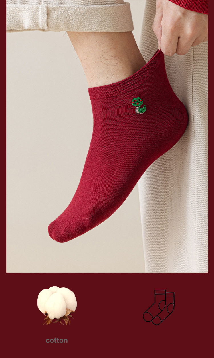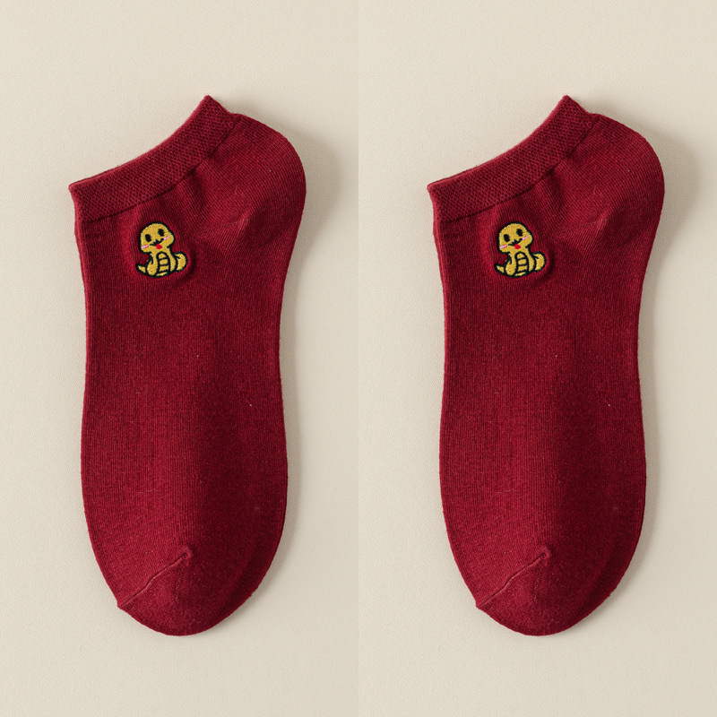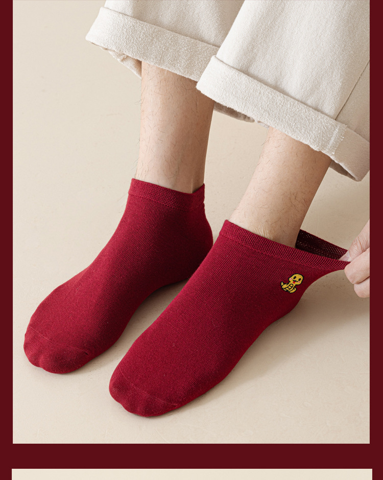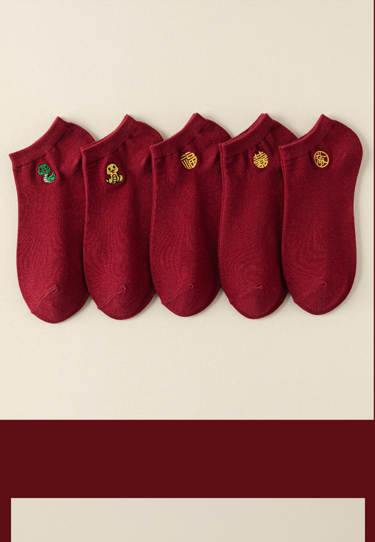 스네이크의 해 버건디 라이프 양말 보트 양말 얇은 짧은 양말 남녀 한 쌍의 웨딩 커플 양말 빨간 양말