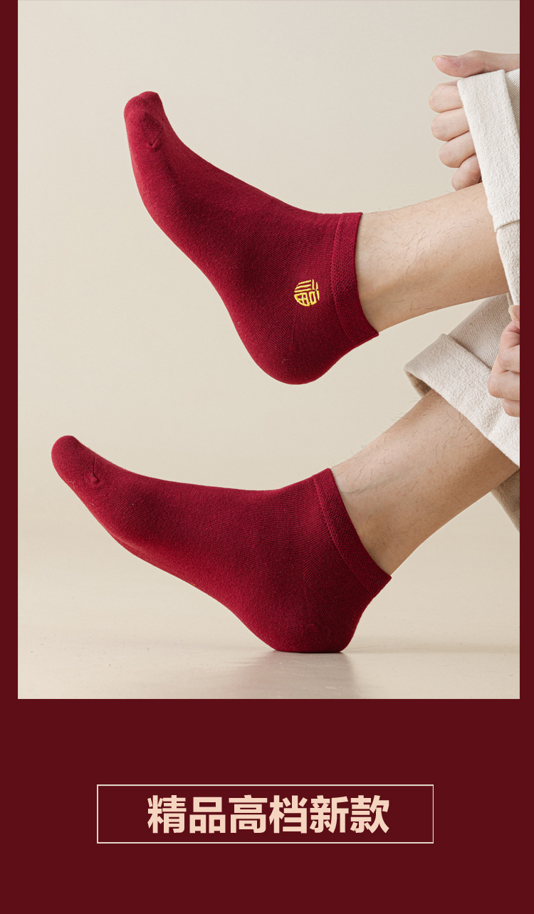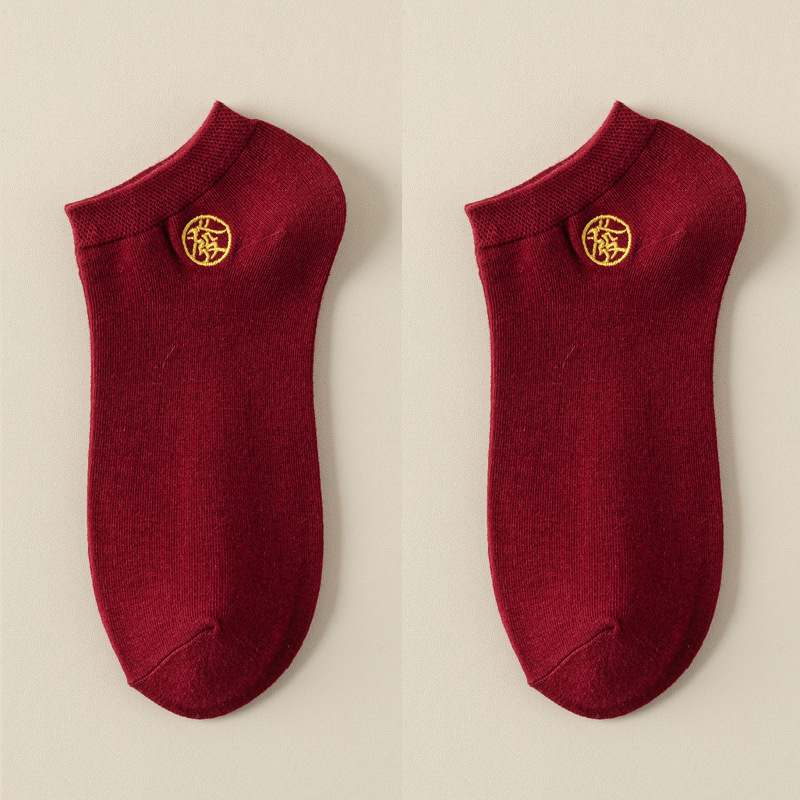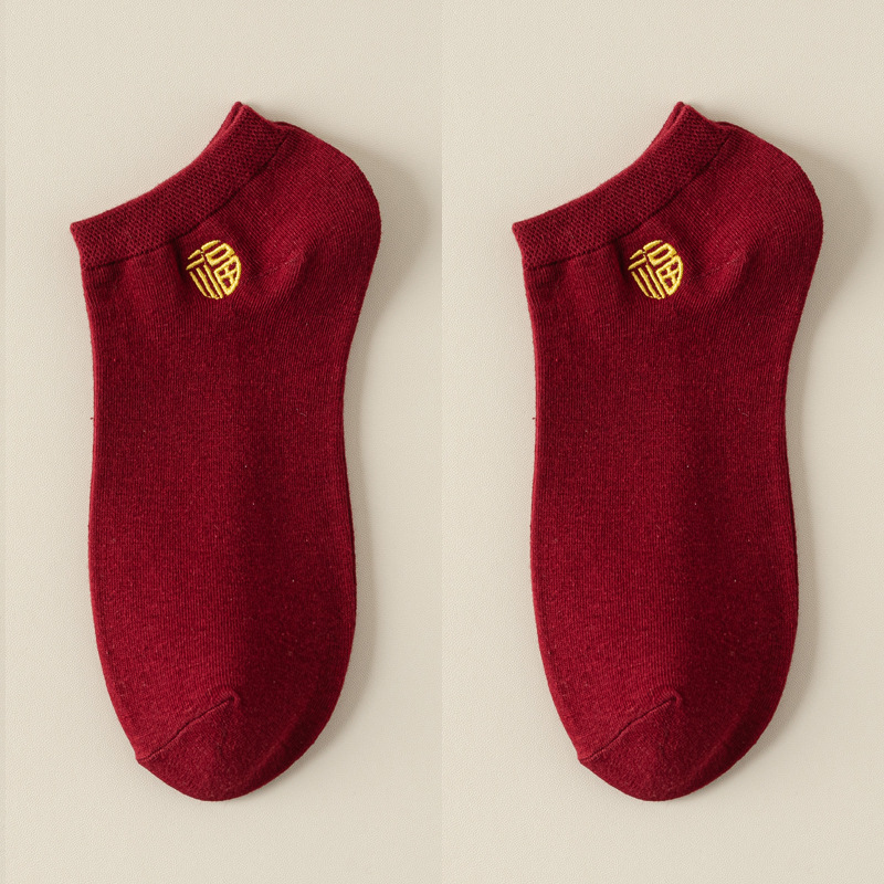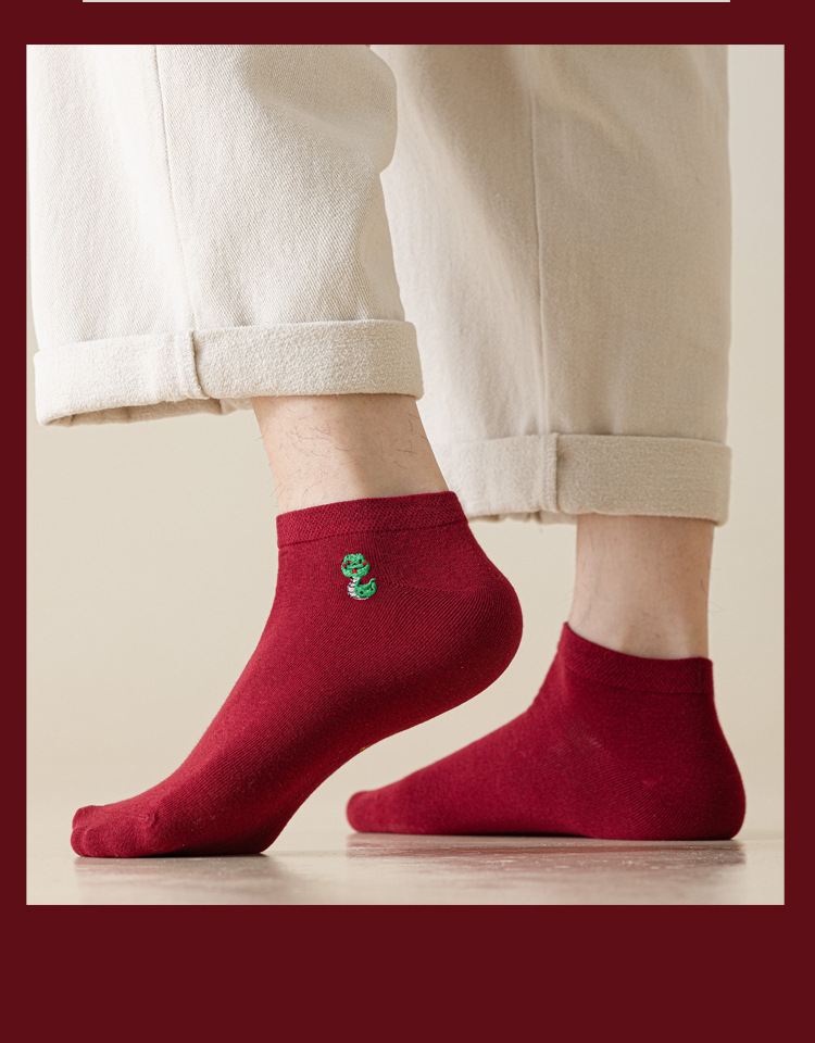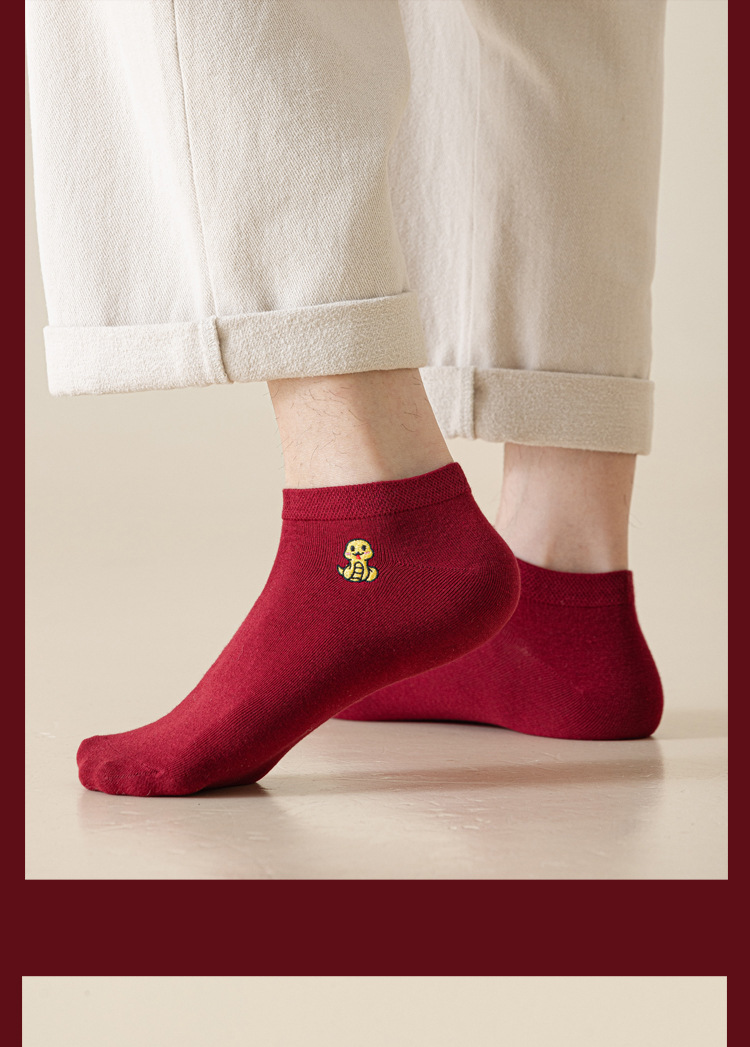 스네이크의 해 버건디 라이프 양말 보트 양말 얇은 짧은 양말 남녀 한 쌍의 웨딩 커플 양말 빨간 양말