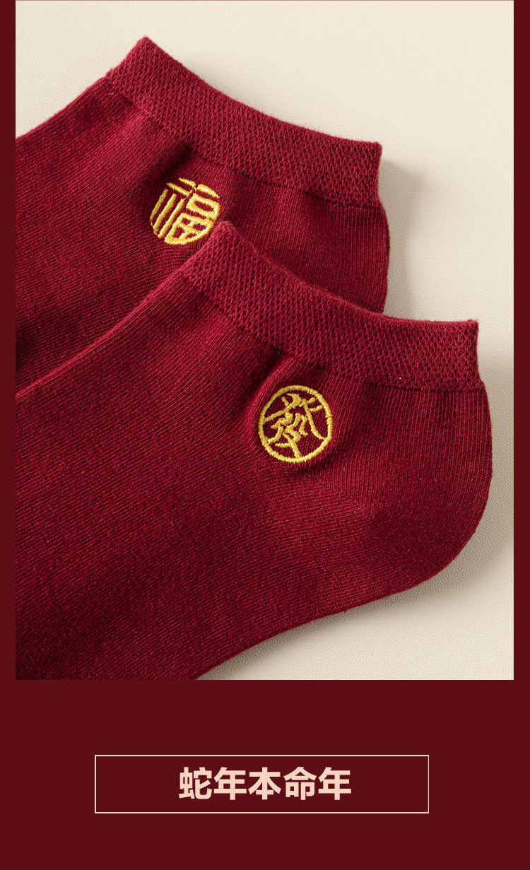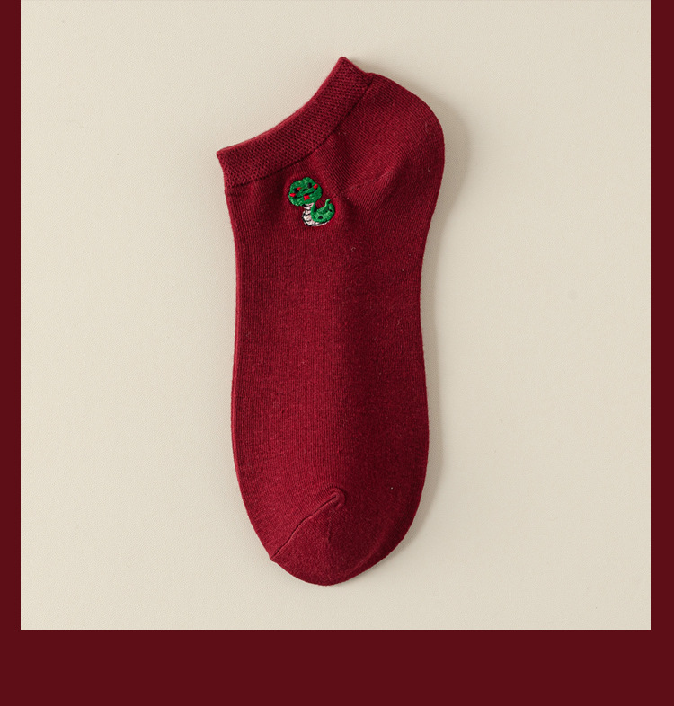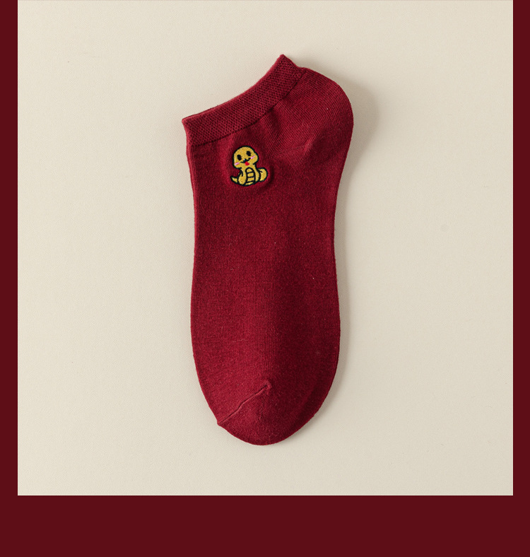 스네이크의 해 버건디 라이프 양말 보트 양말 얇은 짧은 양말 남녀 한 쌍의 웨딩 커플 양말 빨간 양말스토어 가기