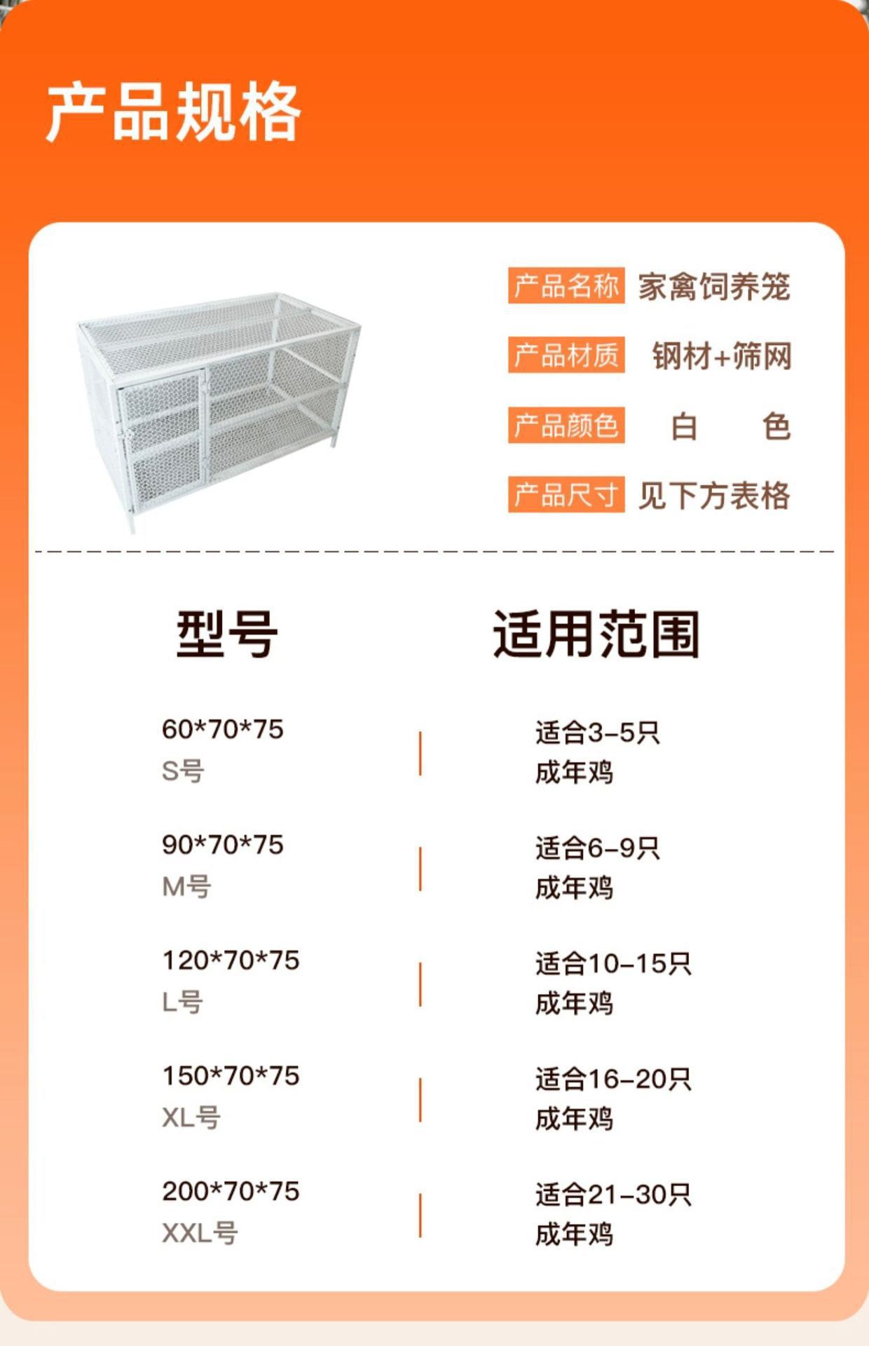 • 길이 90, 너비 70, 높이 75(닭 6-9마리에 적합) - 주문 시 무료 배설물 수집 트레이