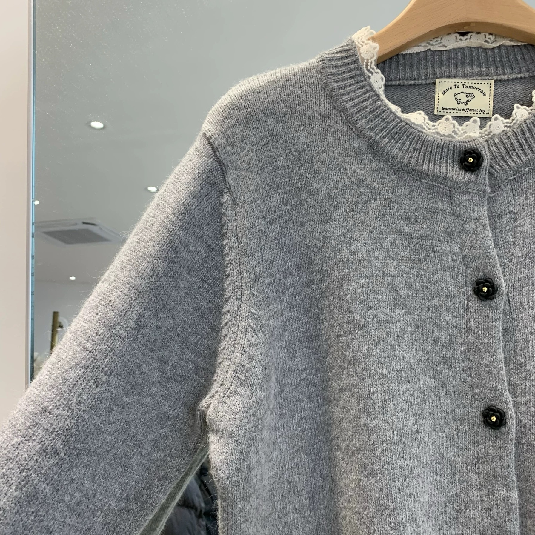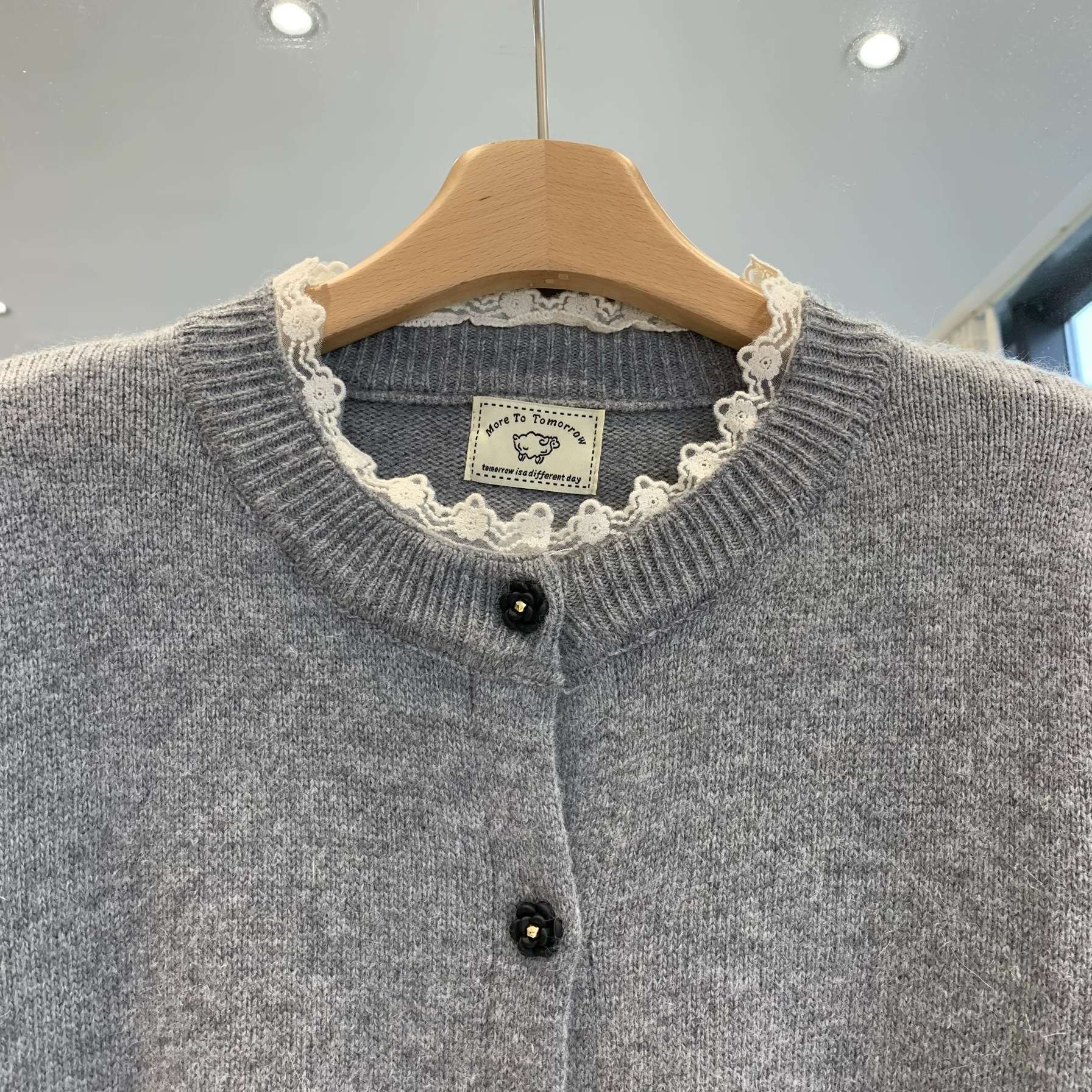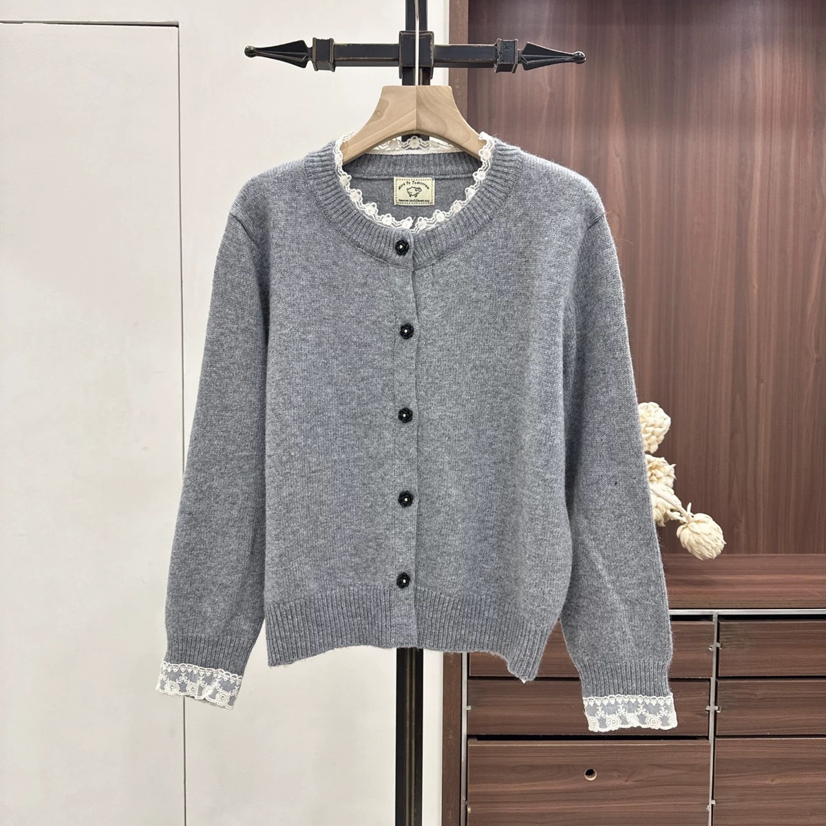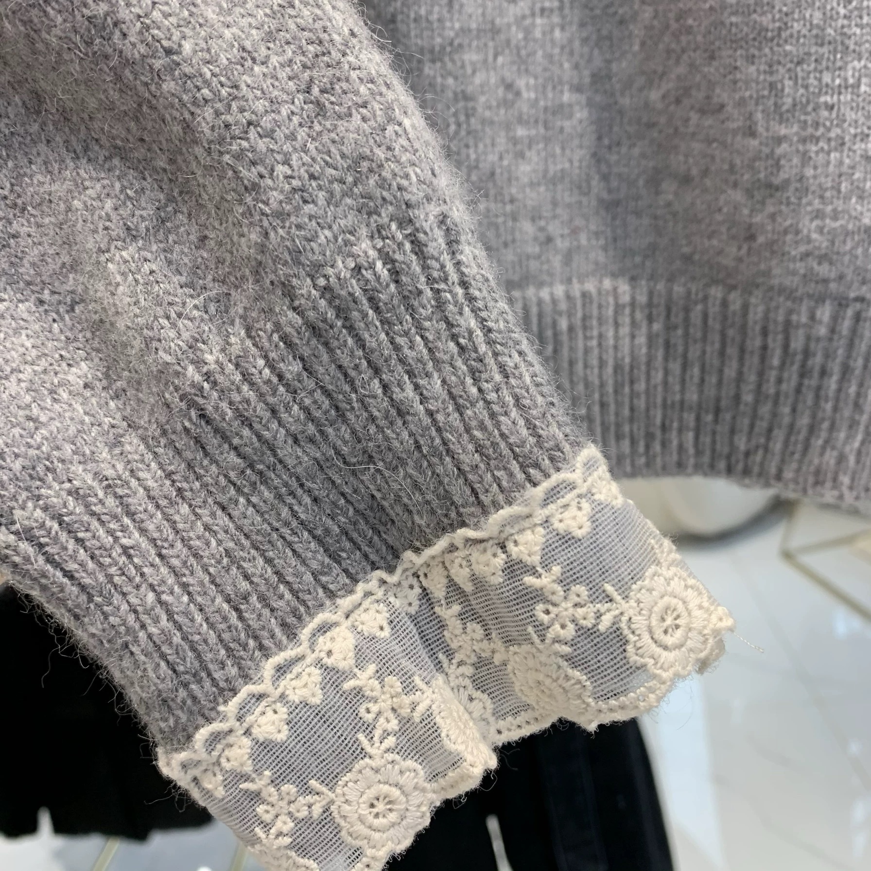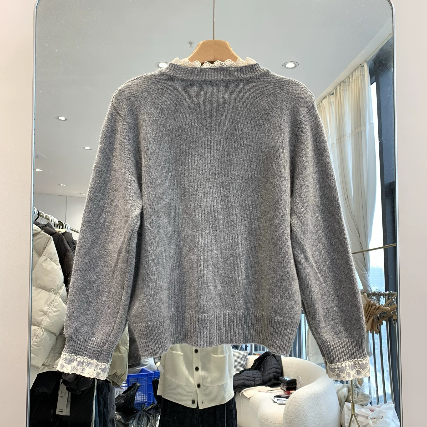 가을과 겨울 새로운 솔리드 컬러 레이스 트리밍 니트 스웨터 여성의 부드러운 게으른 양모 니트 올 매치 코트 탑스토어 가기