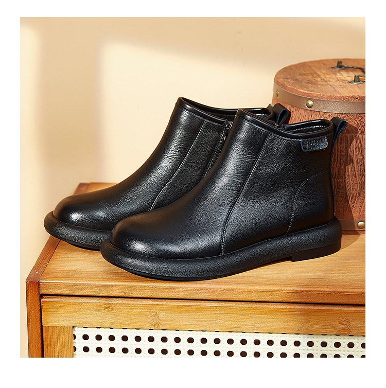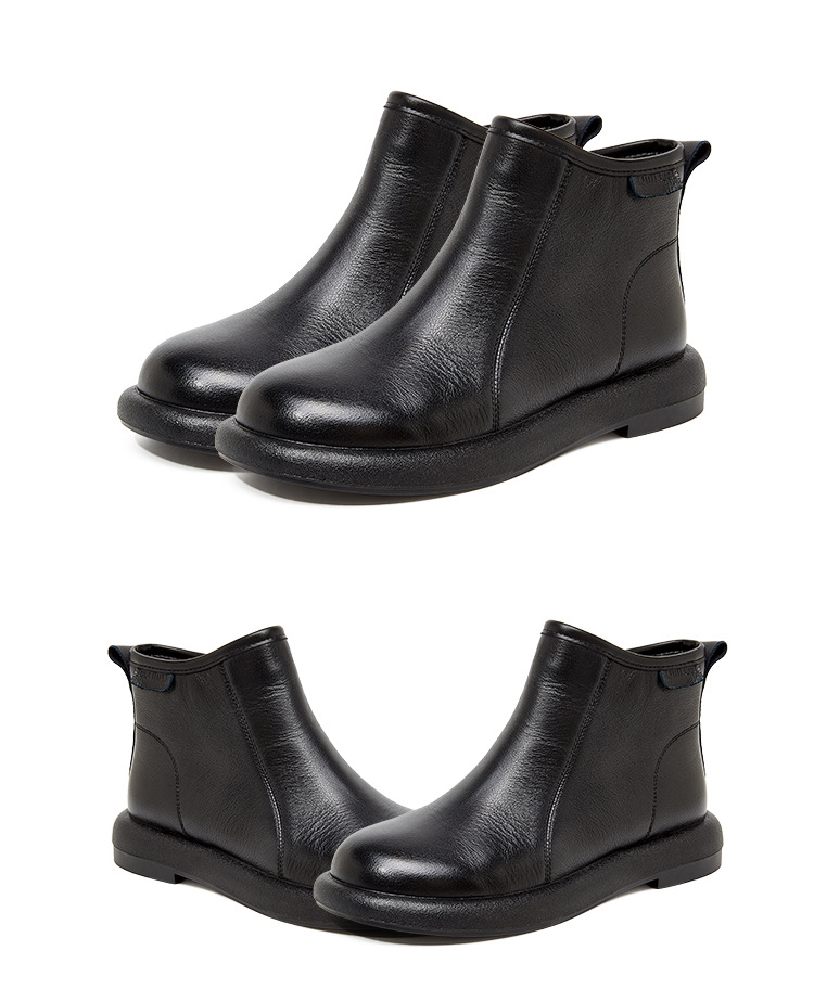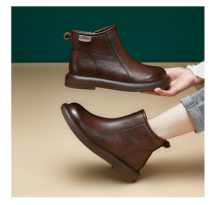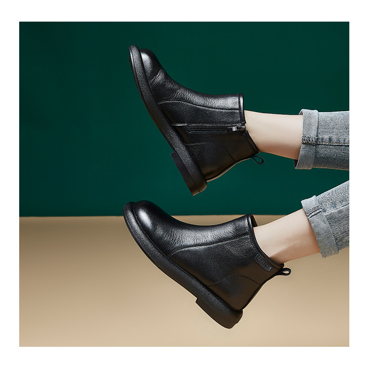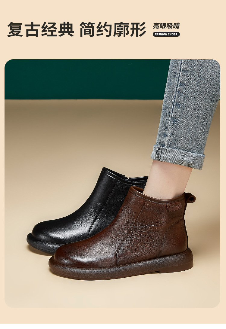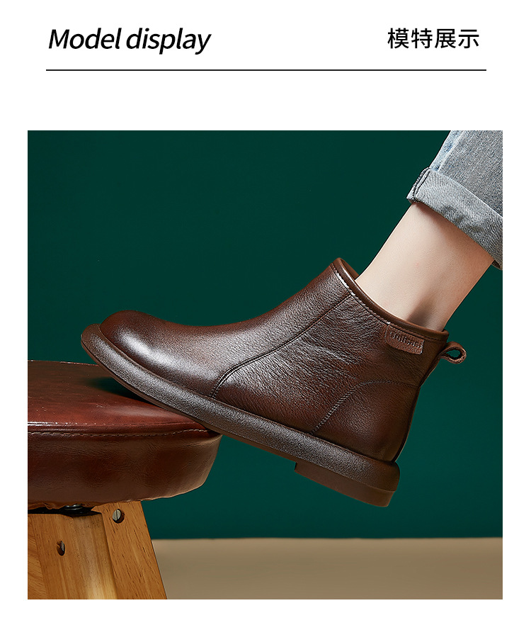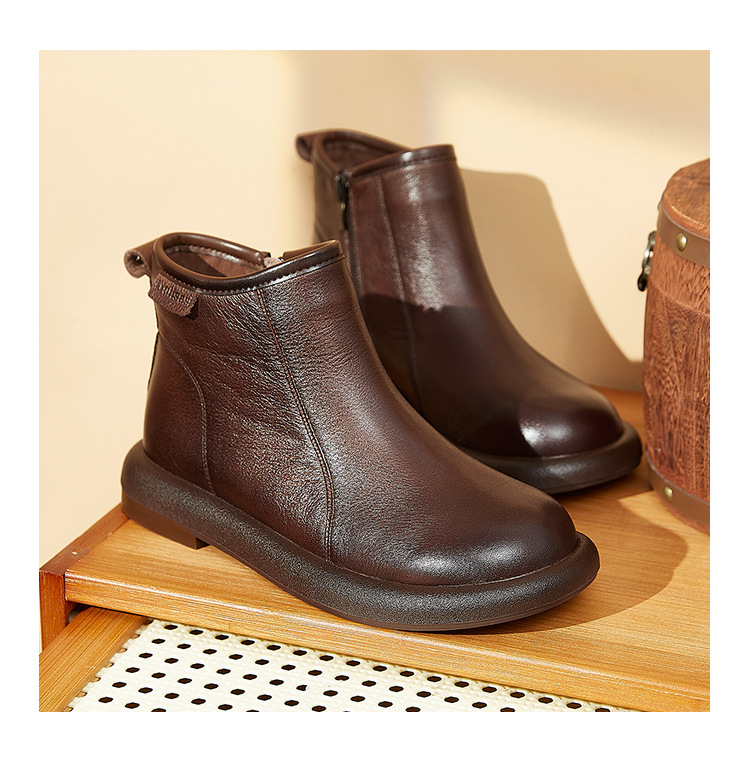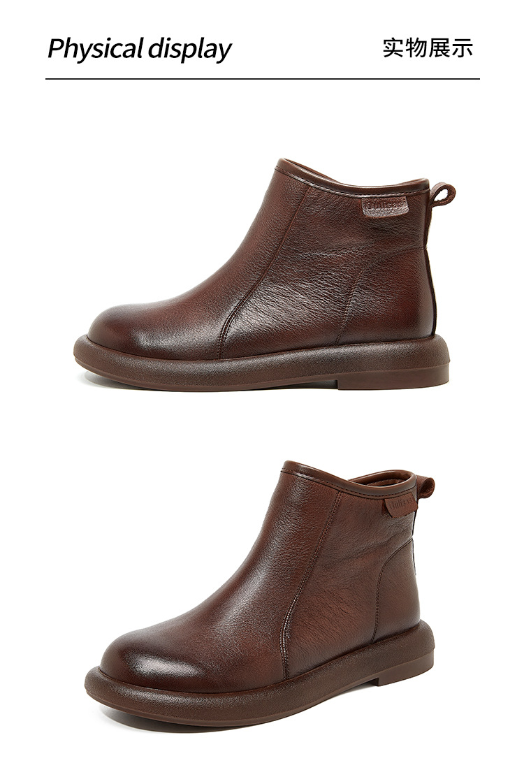 Top Layer Cowhide Martin 부츠 여성용 가을 및 겨울 새 기모 따뜻한 레트로 부츠 여성용 라운드 발가락 올매치 여성용 신발