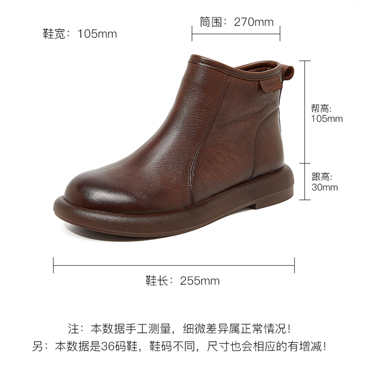 Top Layer Cowhide Martin 부츠 여성용 가을 및 겨울 새 기모 따뜻한 레트로 부츠 여성용 라운드 발가락 올매치 여성용 신발스토어 가기