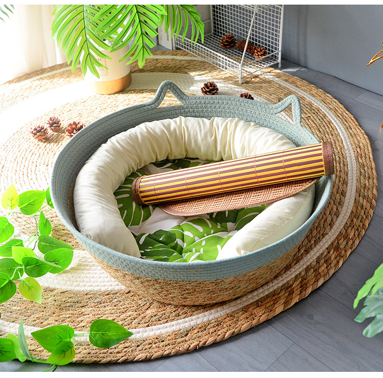 고양이 둥지 사계절 유니버설 등나무 고양이 둥지 여름 시원한 둥지 손으로 짠 고양이 스크래치 보드 매트 라운드 사육장스토어 가기