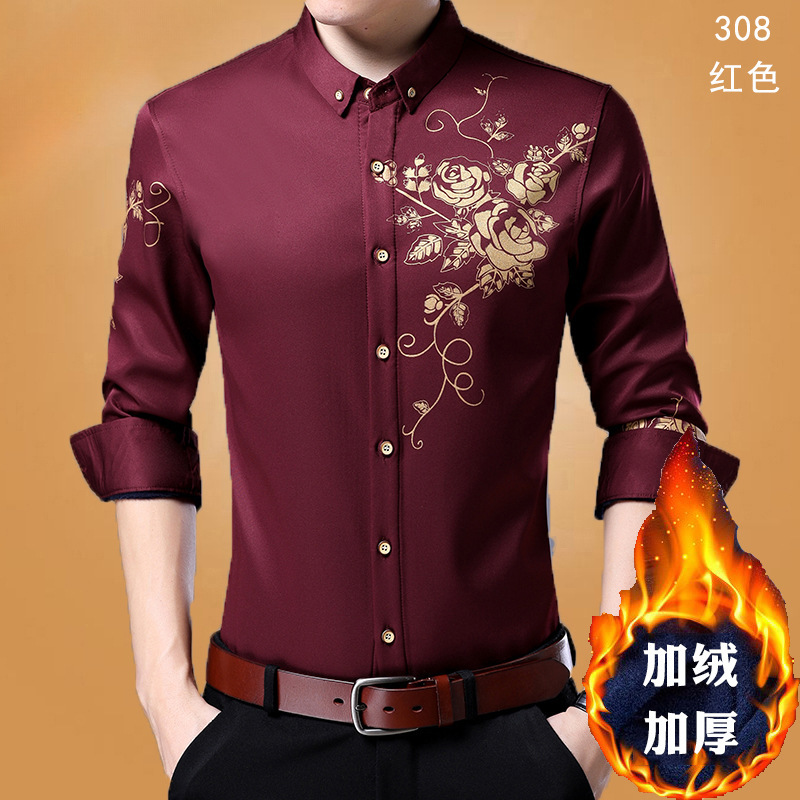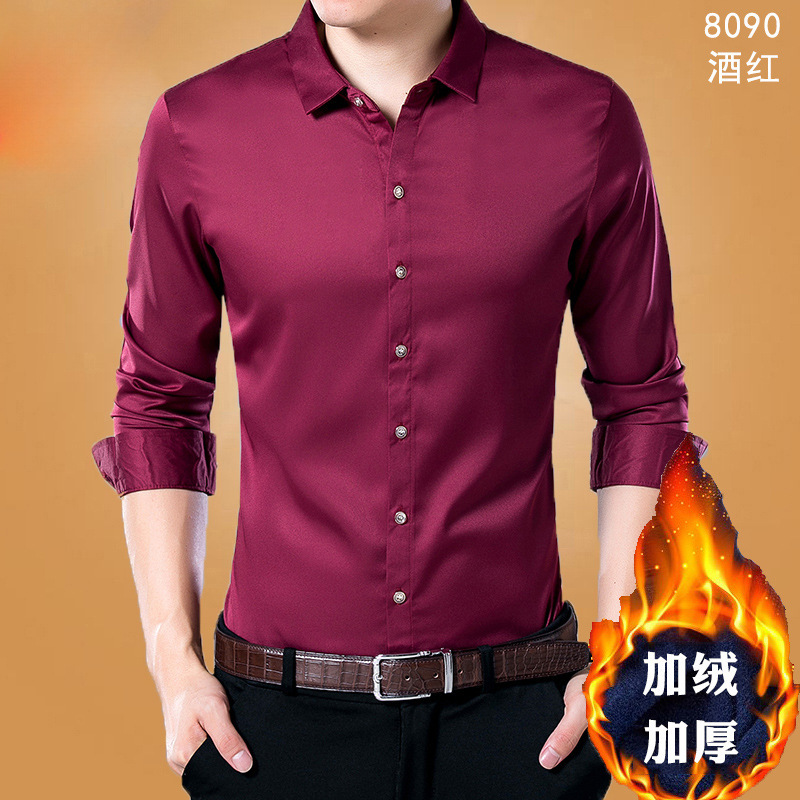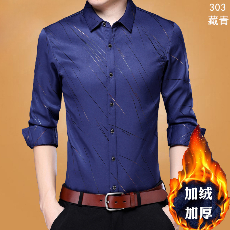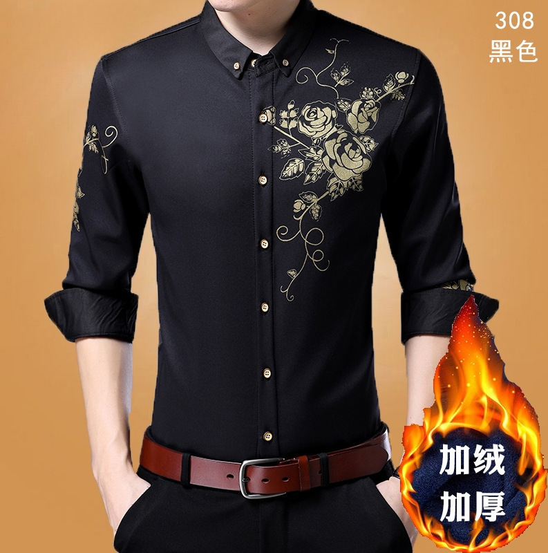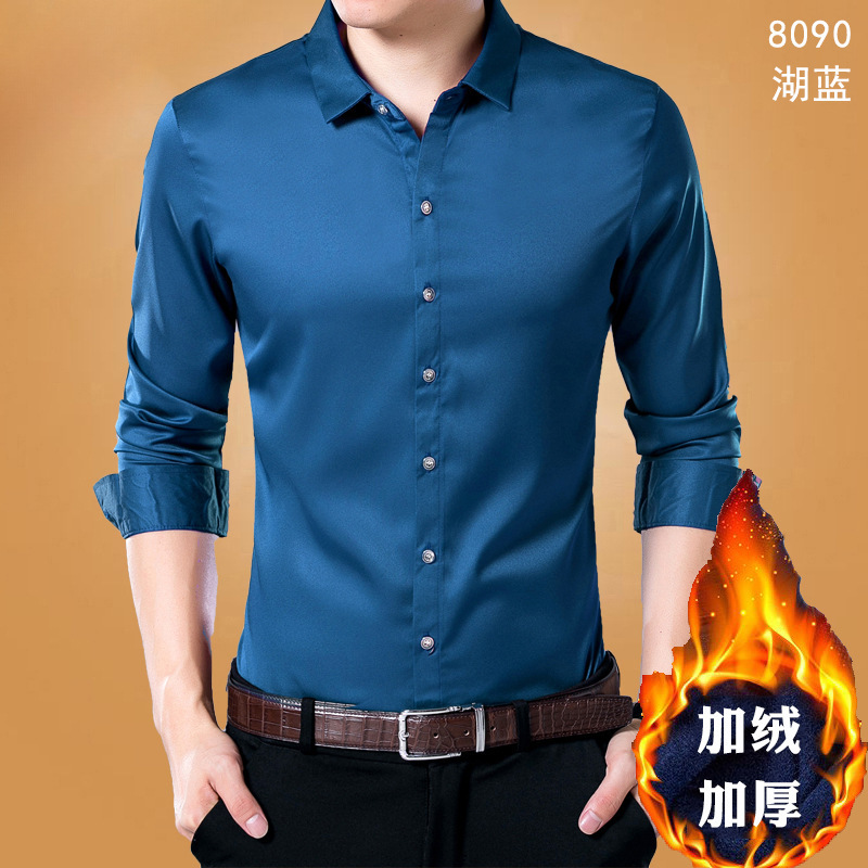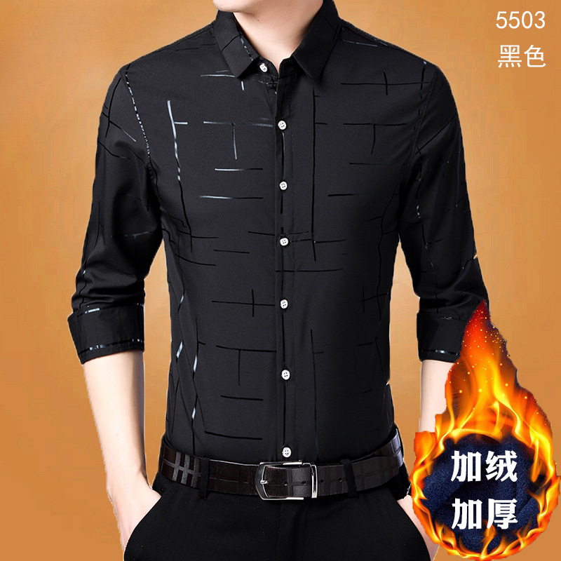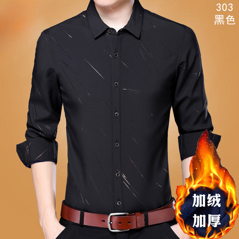 살찐 초대형 셔츠 남성용 기모 두꺼운 느슨한 플러스 사이즈 지방 단색 사업 겨울 따뜻한 검은 셔츠스토어 가기