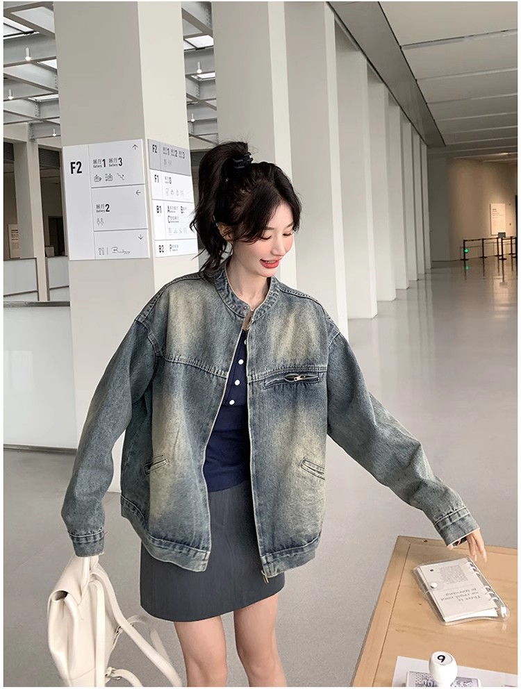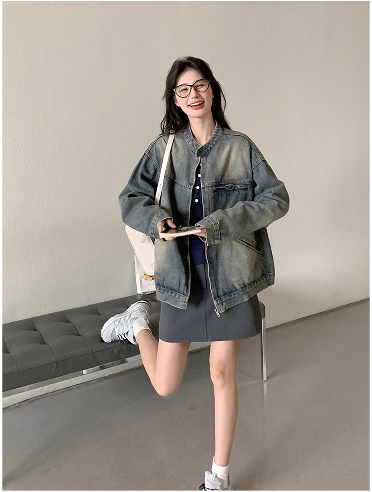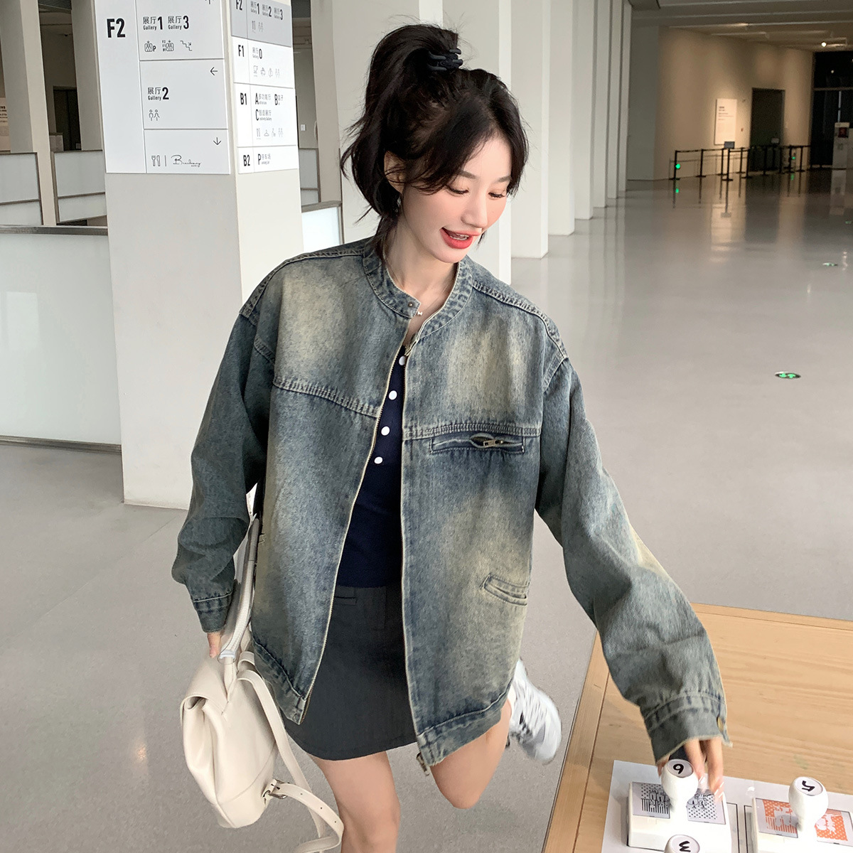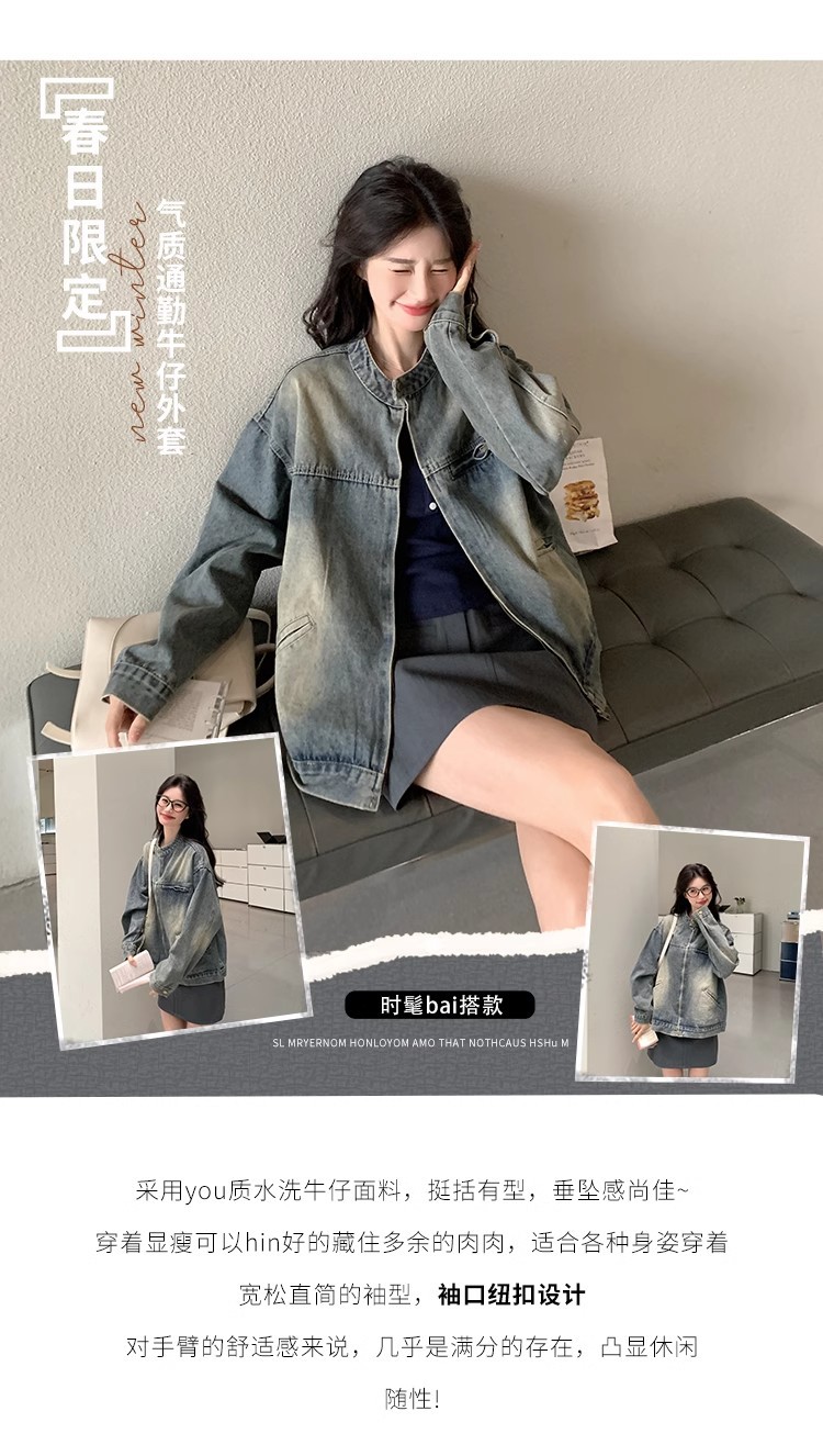 데님 캐주얼 코트 여자 2024 봄과 가을 새로운 한국식 느슨한 슬리밍 간단한 틈새 올 매치 재킷 탑 트렌디스토어 가기