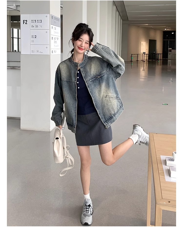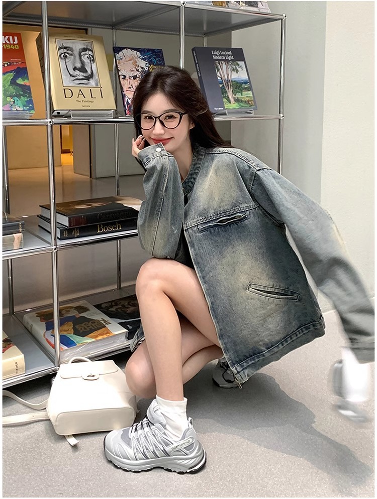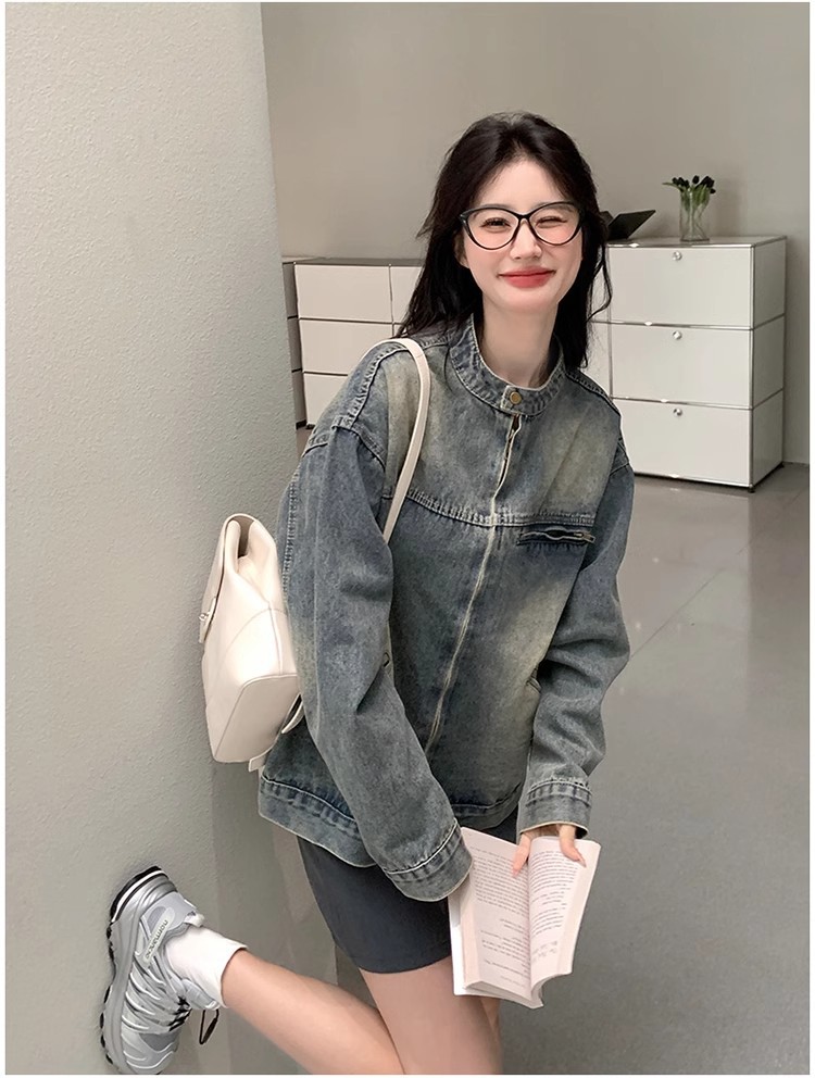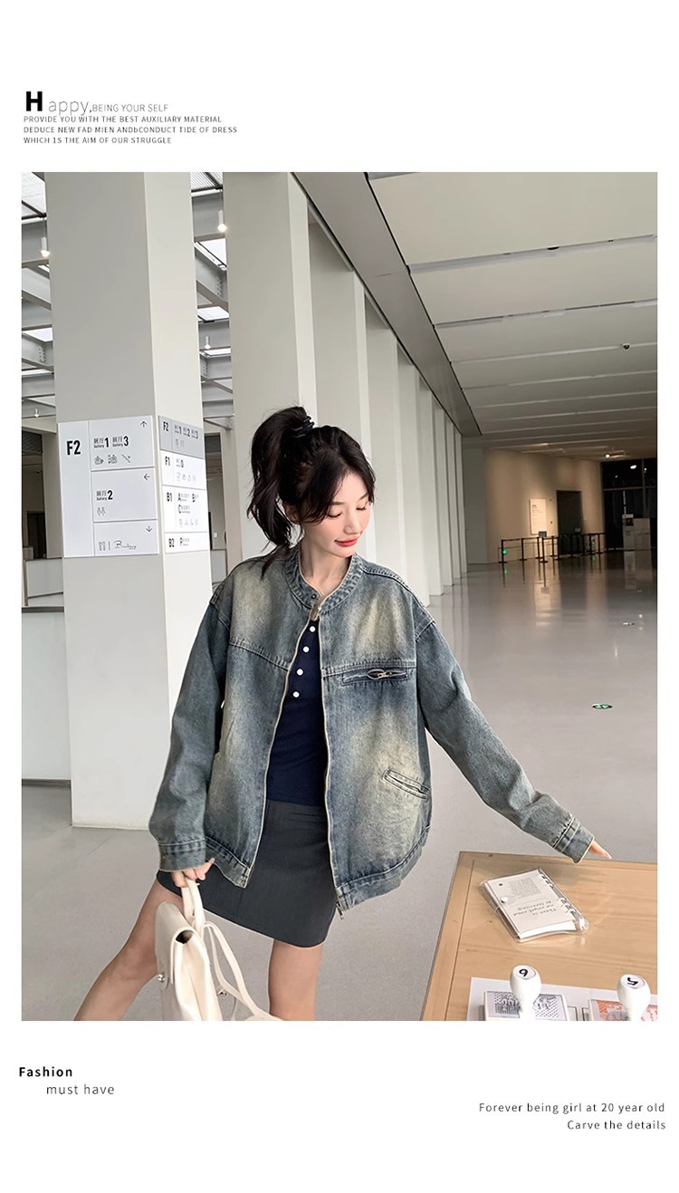 데님 캐주얼 코트 여자 2024 봄과 가을 새로운 한국식 느슨한 슬리밍 간단한 틈새 올 매치 재킷 탑 트렌디스토어 가기