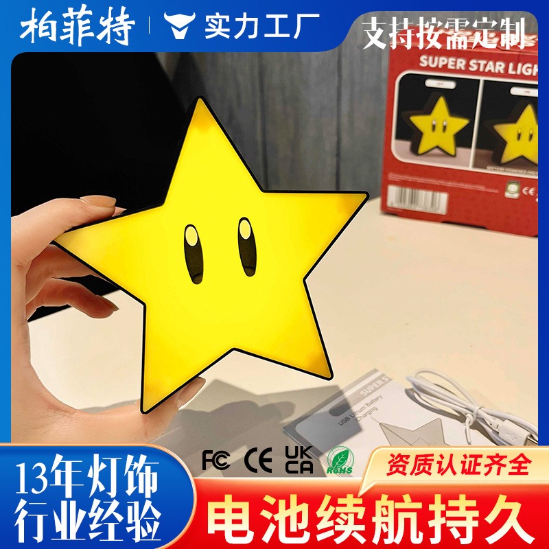 사운드 효과 좋은 귀여운 충전식 슈퍼 마리오 작은 스타 귀여운 장식 소녀 심장 분위기 야간 조명스토어 가기
