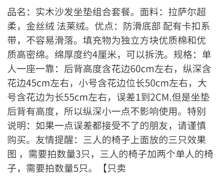 가을과 겨울 솔리드 우드 소파 싱글 쿠션 등받이 3 인승 소파 콤비네이션 쿠션 탈착식 워시블 쿠션