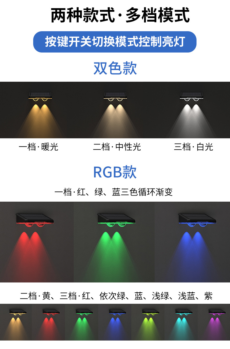 태양광 야외 정원 벽등 아마존 LED 조명 정원 복도 RGB 다채로운 분위기 조명 야외 벽면 조명