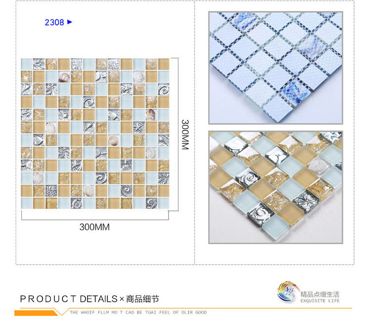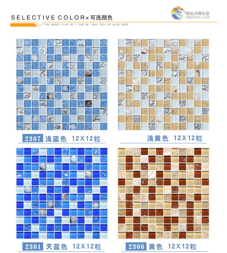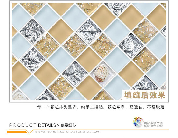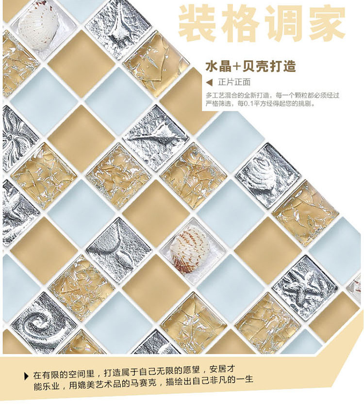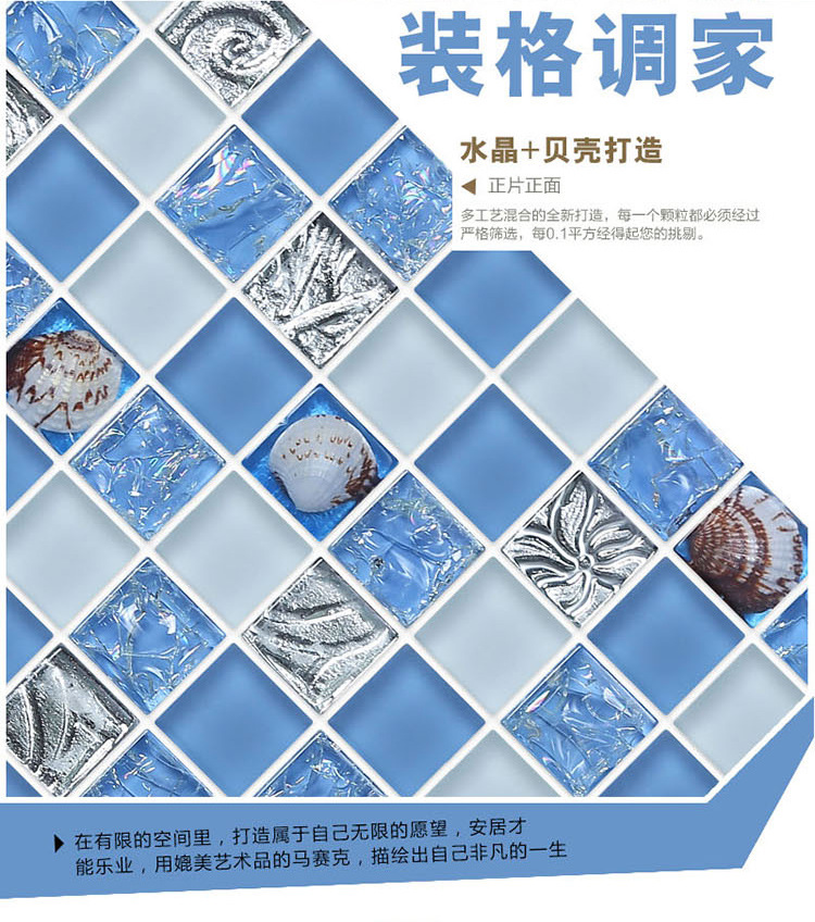 쉘 크리스탈 유리 아이스 크랙 모자이크 지중해 스타일 TV 배경 벽 수영장 화장실 발코니 타일