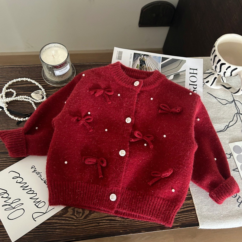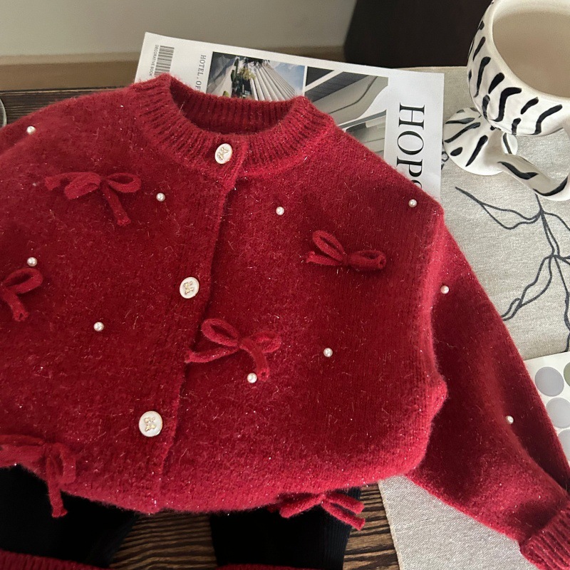 한국판 아동복 2024 새 겨울 소녀 두꺼운 스웨터 카디건 양말 기모 레깅스 세트스토어 가기