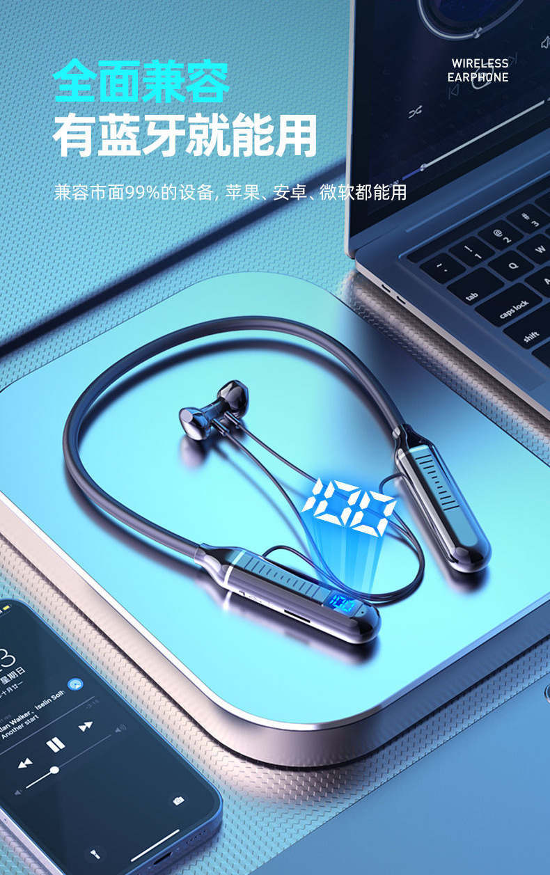 폭발적인 교수형 목 블루투스 헤드셋 무선 음악 LED 디지털 디스플레이 헤드셋 BT-02 지원 게임 헤드셋 스포츠 헤드셋스토어 가기