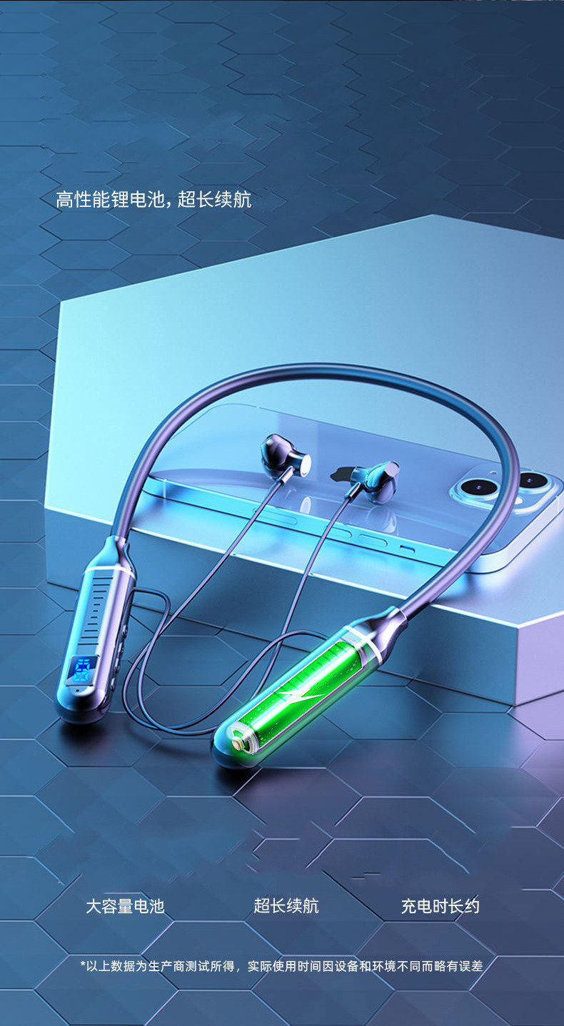 폭발적인 교수형 목 블루투스 헤드셋 무선 음악 LED 디지털 디스플레이 헤드셋 BT-02 지원 게임 헤드셋 스포츠 헤드셋