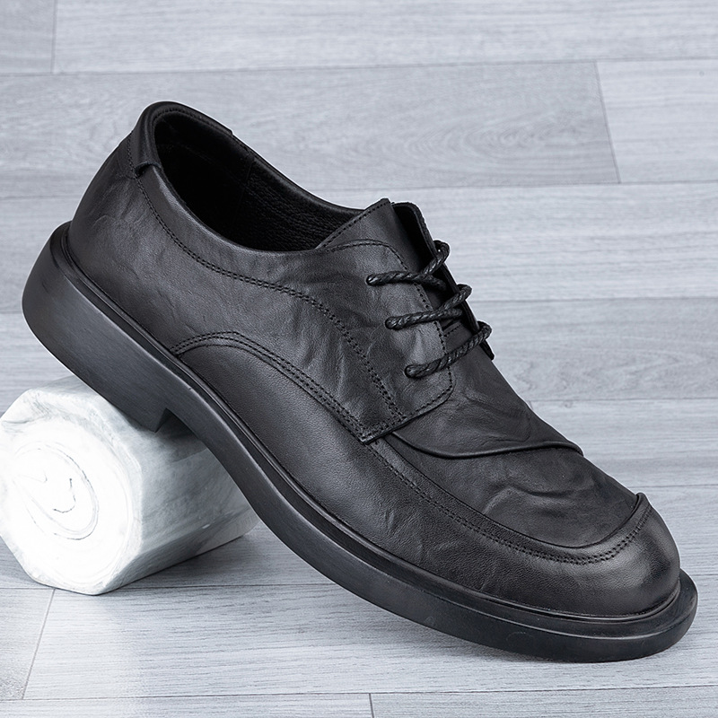 정품 가죽 남성 신발 탑 레이어 Cowhide 소프트 하단 부드러운 표면 두꺼운 하단 레이스 업 라운드 헤드 남성 패션 맞춤형 비즈니스 캐주얼 가죽 신발스토어 가기