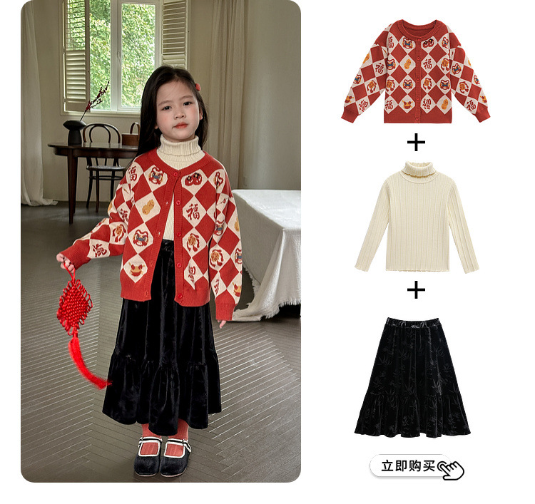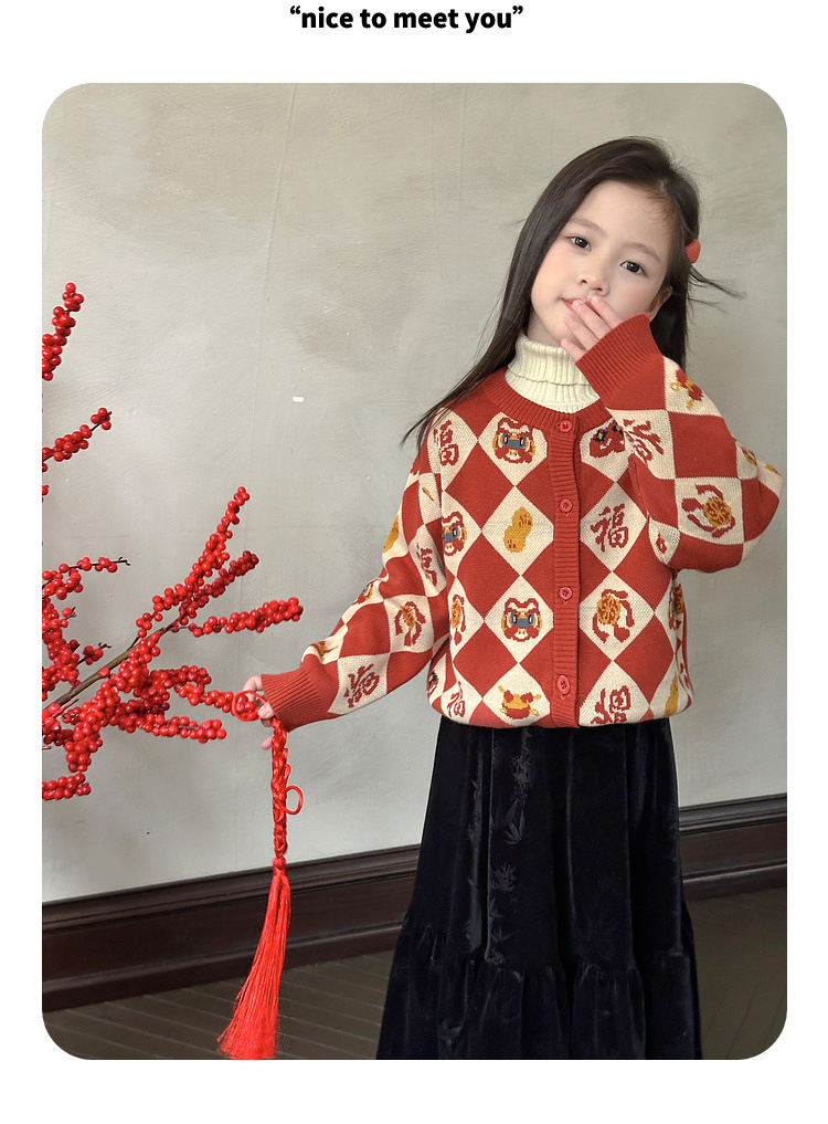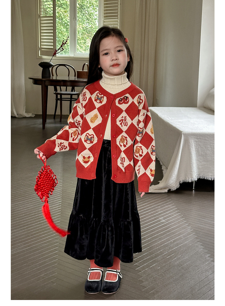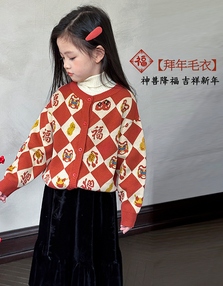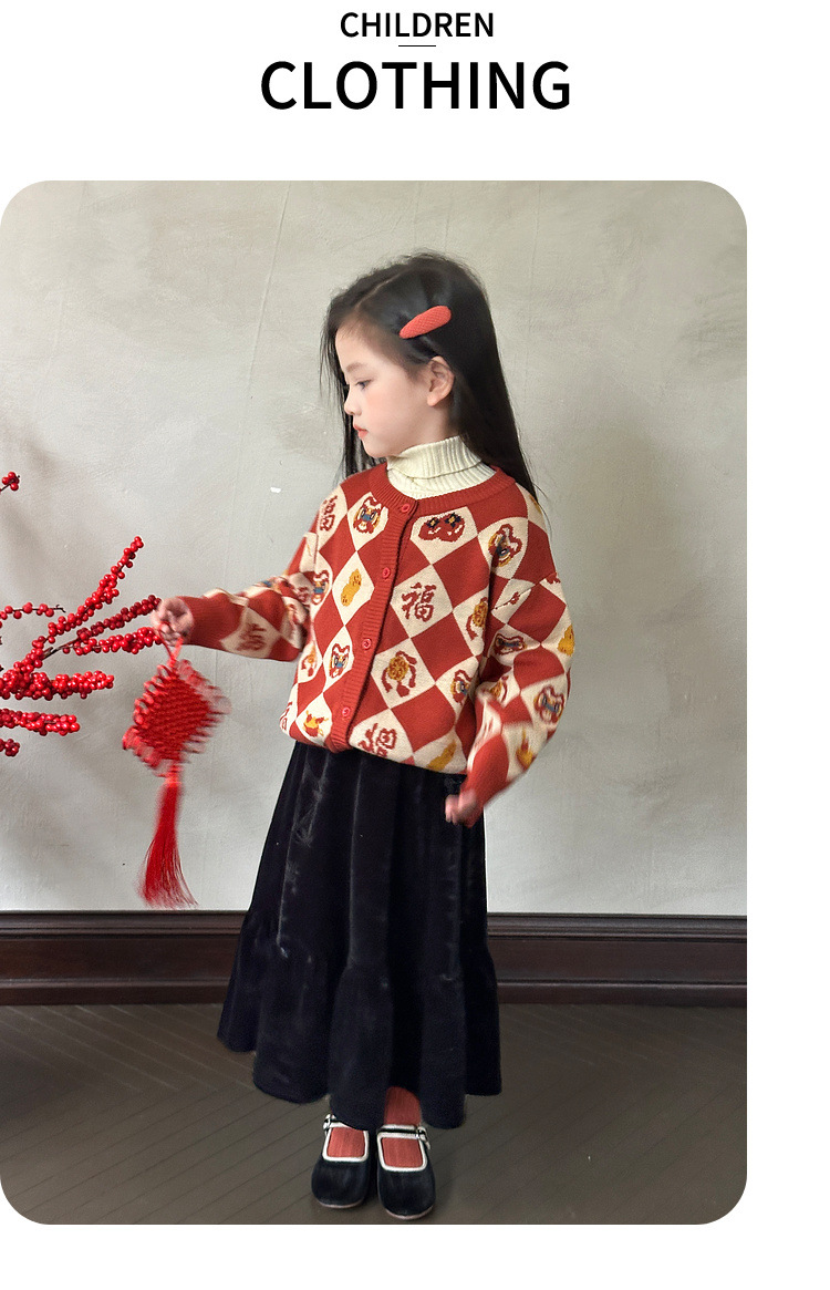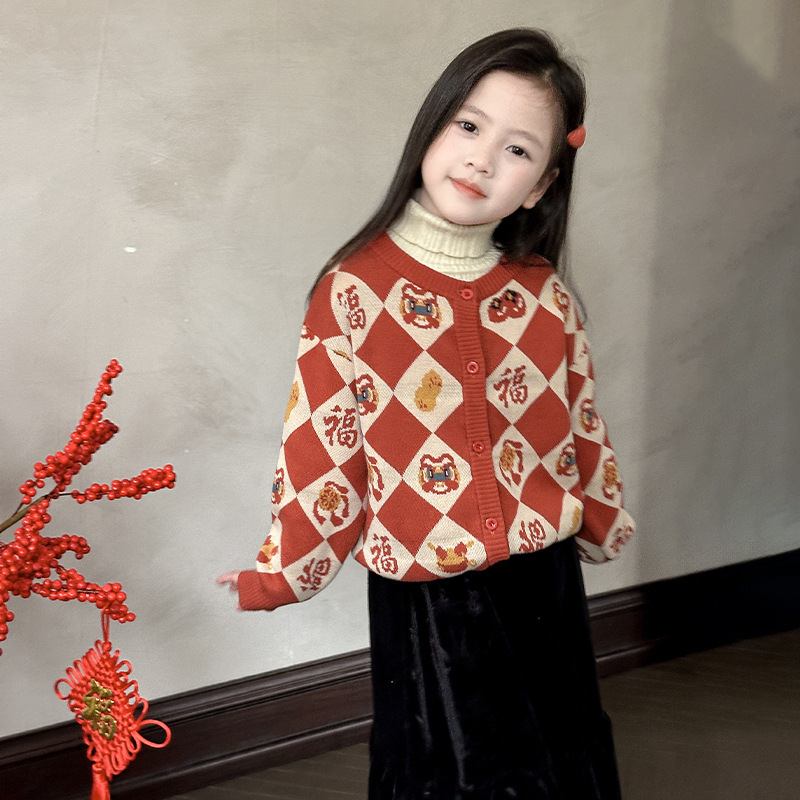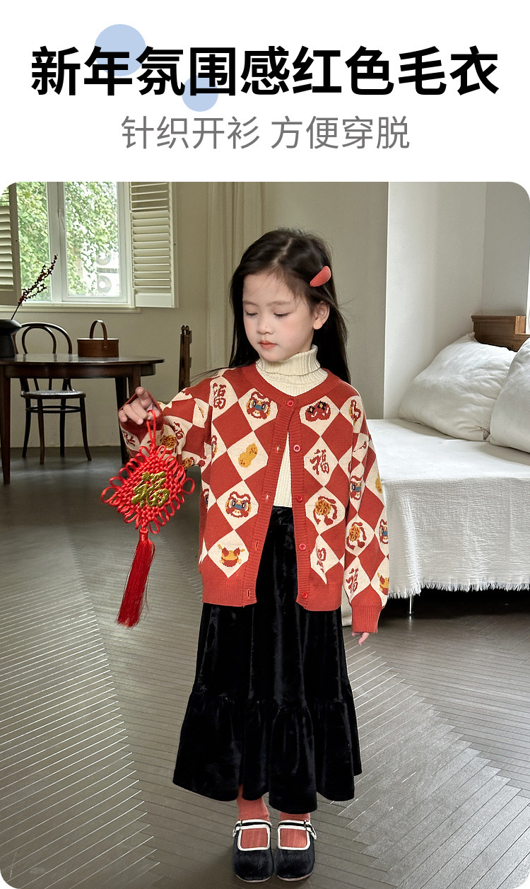 투투 코끼리 소녀의 니트 카디건 겨울 새해 서비스 축제 2024 새로운 따뜻한 니트 스웨터 재킷