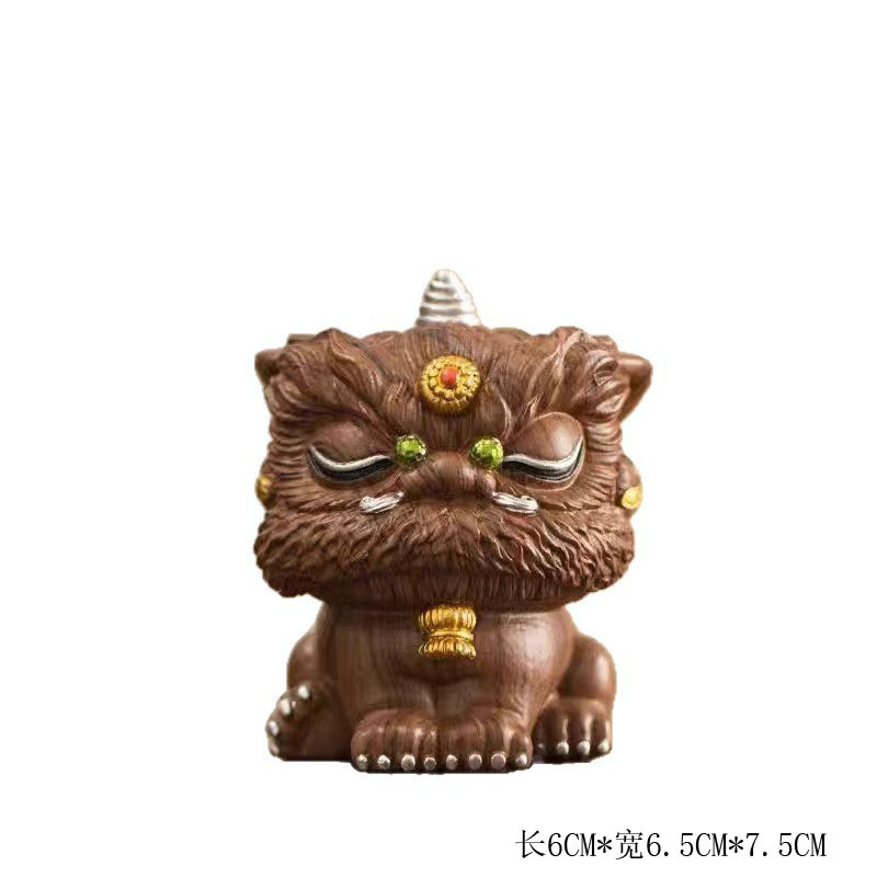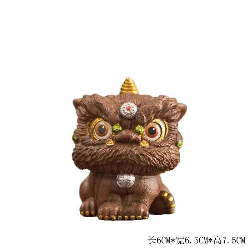 새로운 중국 스타일 국가 패션 루킹 보물 사자 장식 차 애완 동물 자동차 데스크탑 장식 귀여운 홈 액세서리 선물