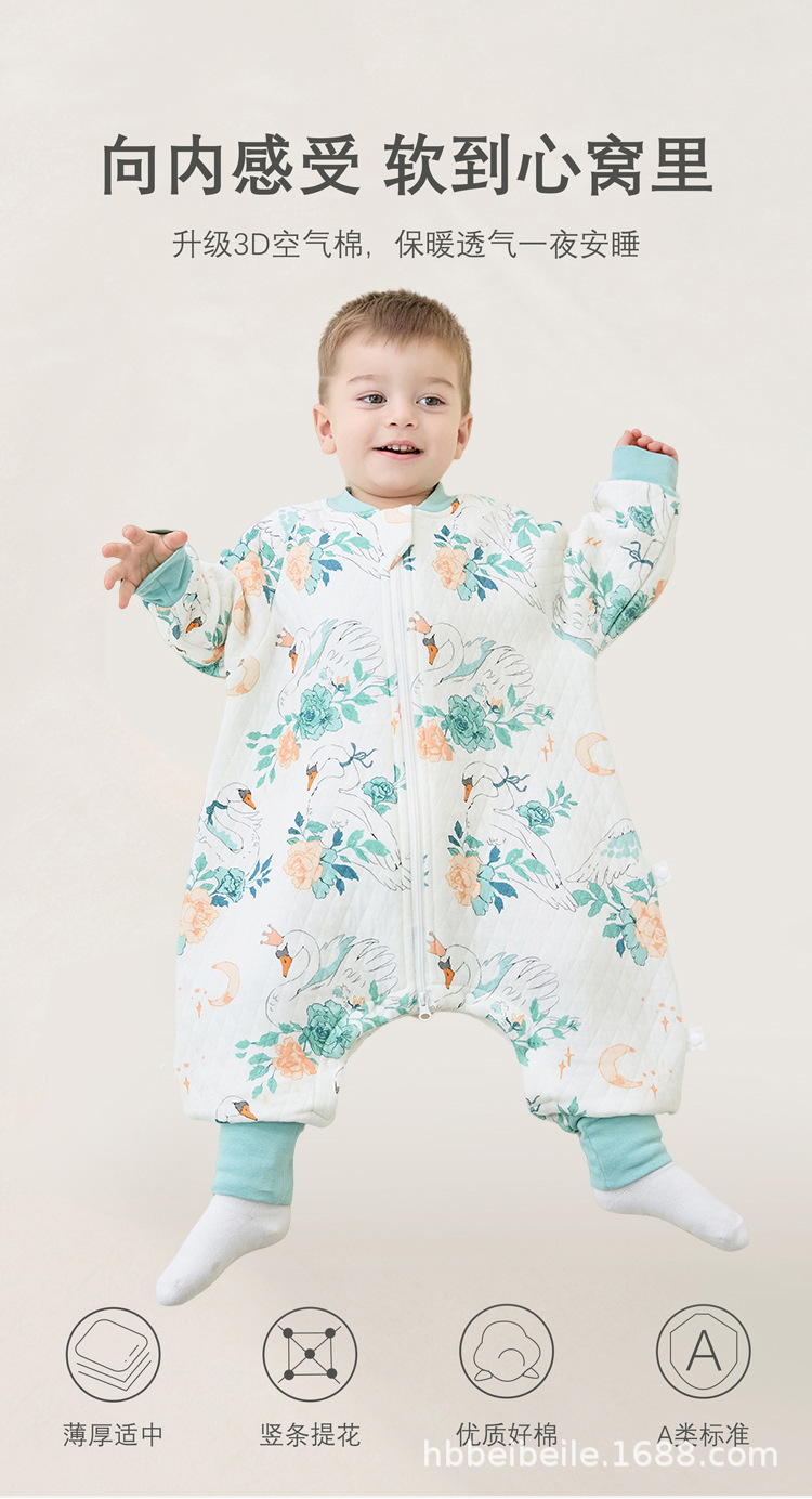 아기 발차기 방지 이불, 어린이 가을 겨울용 A급 유아용 다리 분리형 아기 침낭, 통기성, 두꺼운, 보온