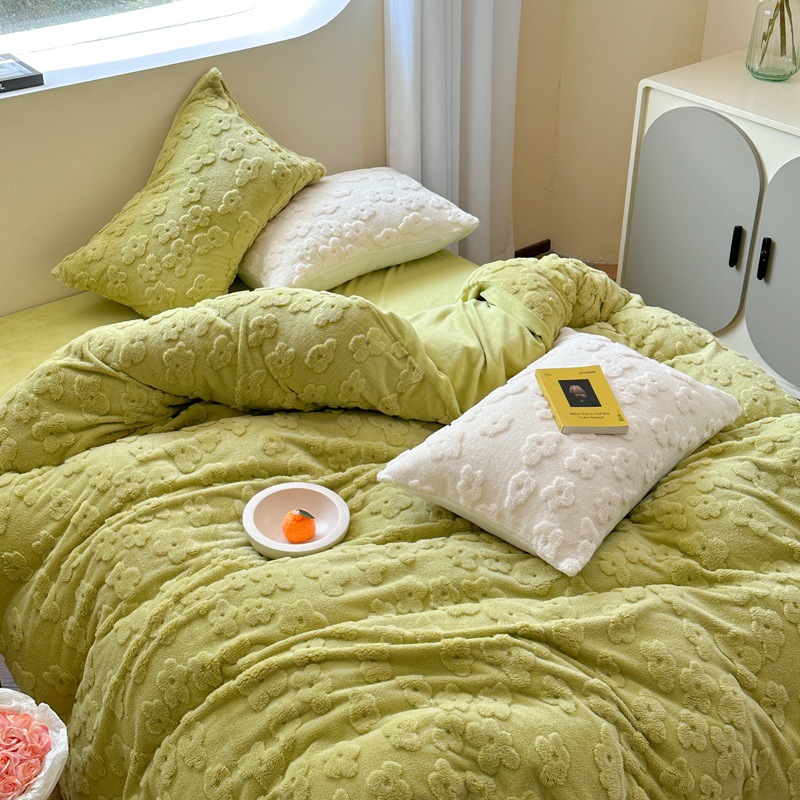 높은 무게 작은 신선한 3 차원 컷 꽃 편안한 코튼 벨벳 4 피스 세트 Fengyun 꽃 우유 벨벳 기숙사 3 피스 세트