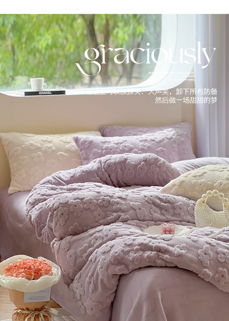 높은 무게 작은 신선한 3 차원 컷 꽃 편안한 코튼 벨벳 4 피스 세트 Fengyun 꽃 우유 벨벳 기숙사 3 피스 세트스토어 가기