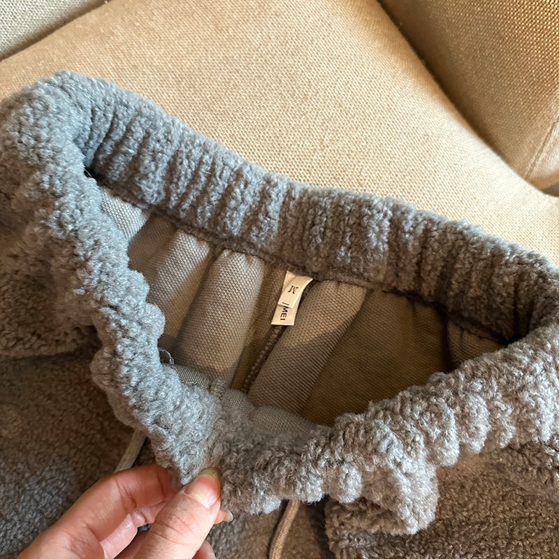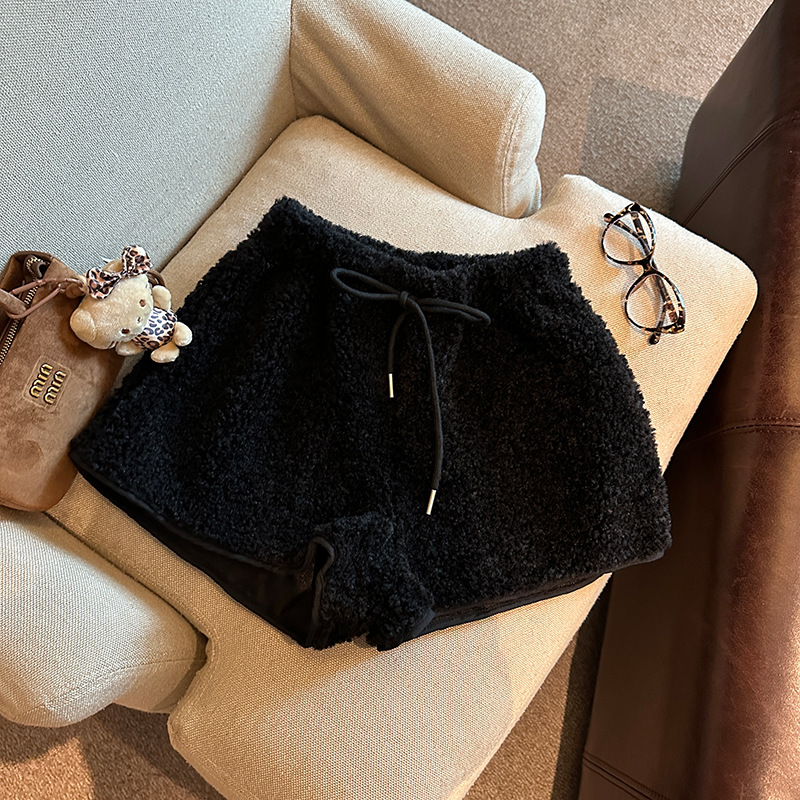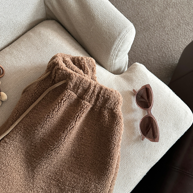 느슨한 허리 양고기 양모 캐주얼 바지 여성 겨울 한국 스타일 두꺼운 봉제 부츠 바지 넓은 다리 반바지 회색 뜨거운 바지스토어 가기