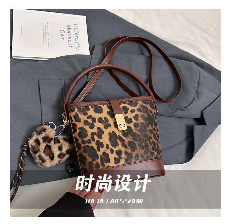 올해 인기있는 가방 여성 가을과 겨울 2024 새로운 레오파드 무늬 틈새 메신저 가방 캐주얼 휴대용 버킷 가방