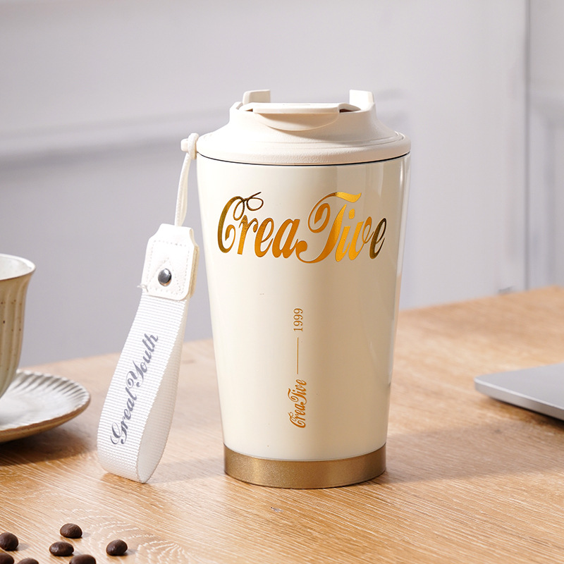 커피 보온병 컵 316 스테인레스 스틸 라이너 간단한 패션 더블 음료 컵 밀짚 컵 선물 로고 구성