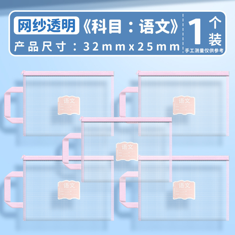 주제 분류 메쉬 주제 가방 5 책 저장 가방 학생을위한 라벨 핸드백이 포함 된 투명 비주얼 백