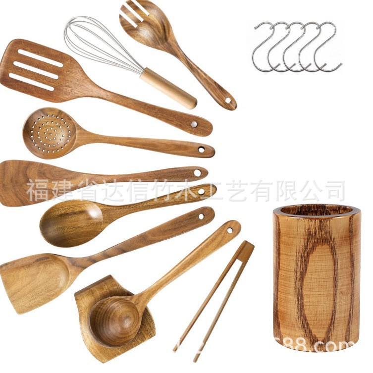 국경을 넘는 10종 세트 5종 세트 나무 숟가락 뒤집개 국자 나무 주걱 주방 도구 주방용품 세트 보관통스토어 가기