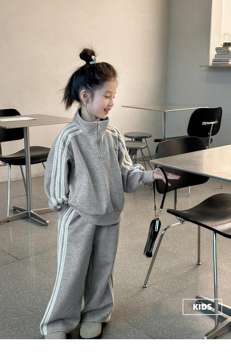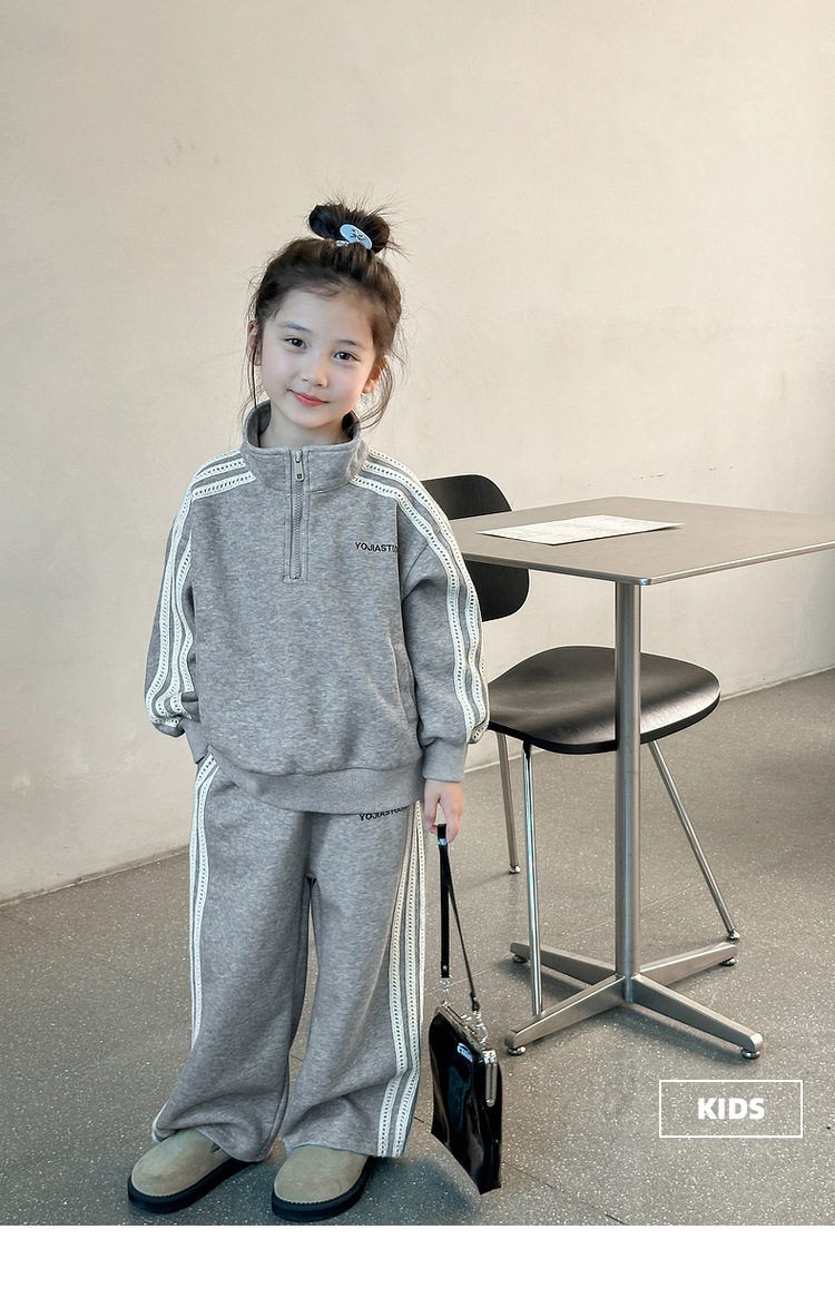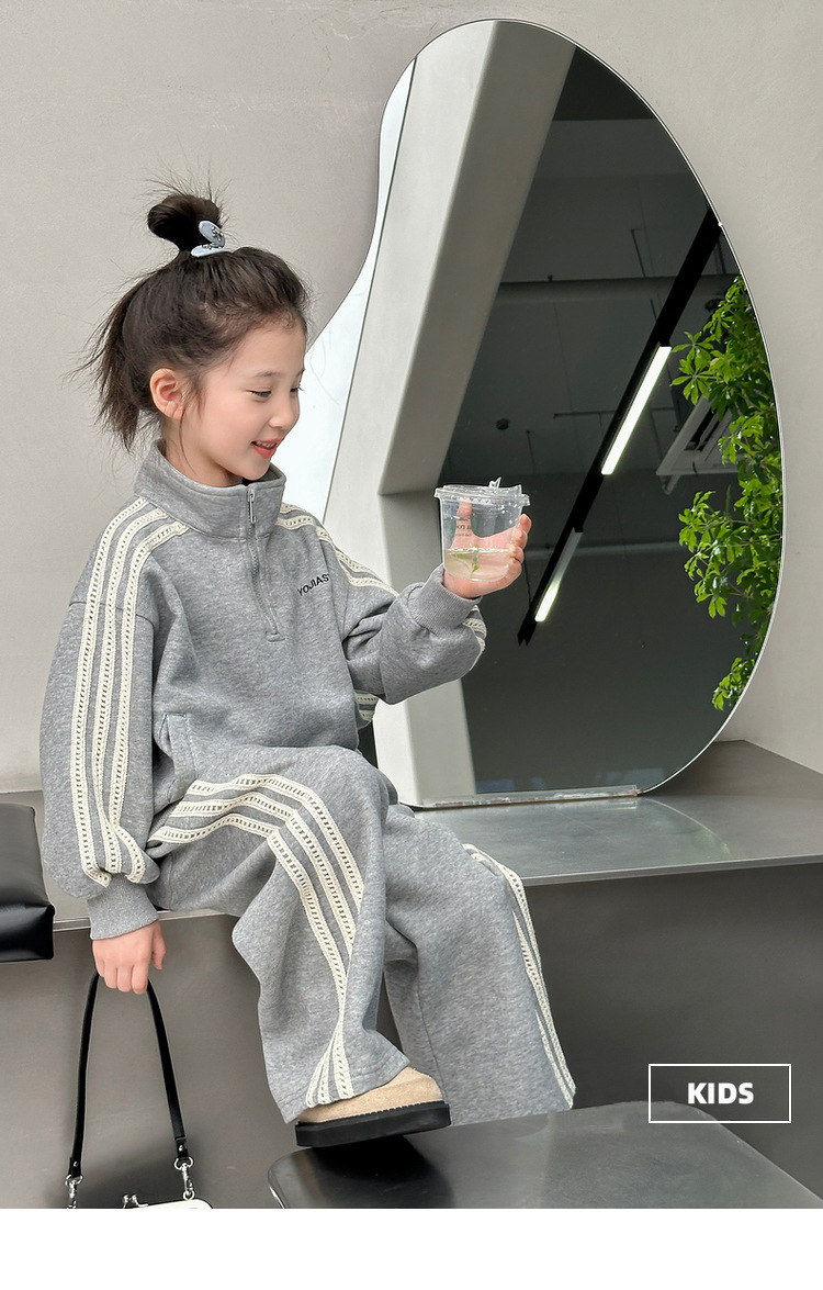 소녀 스포츠 세트 가을 의류 2025 새로운 유행 어린이 의류 서양식 어린이 봄과 가을 땀 바지 투피스 세트스토어 가기