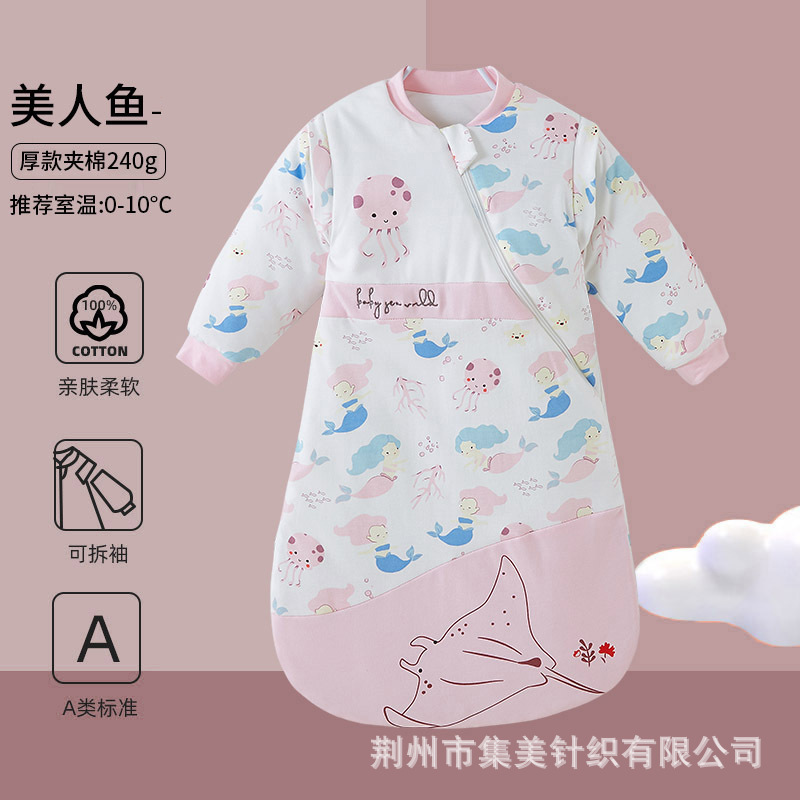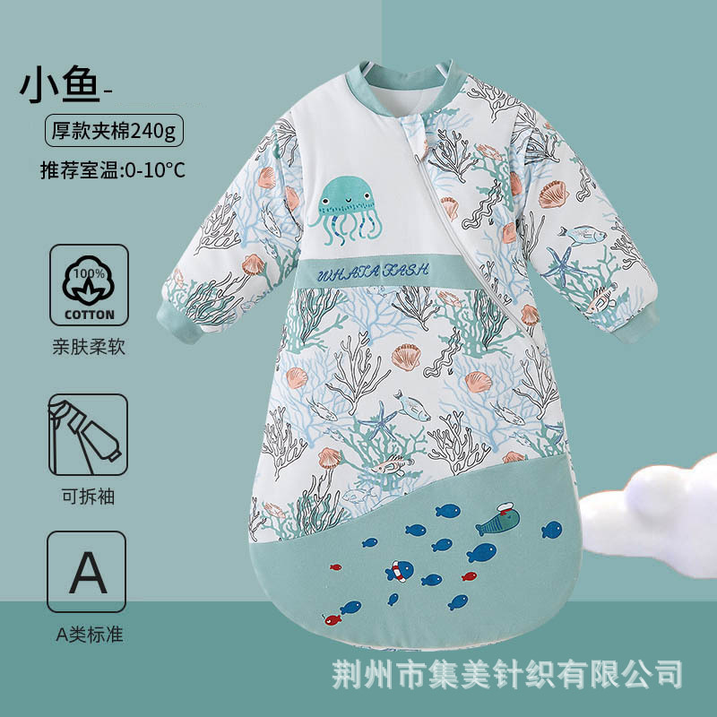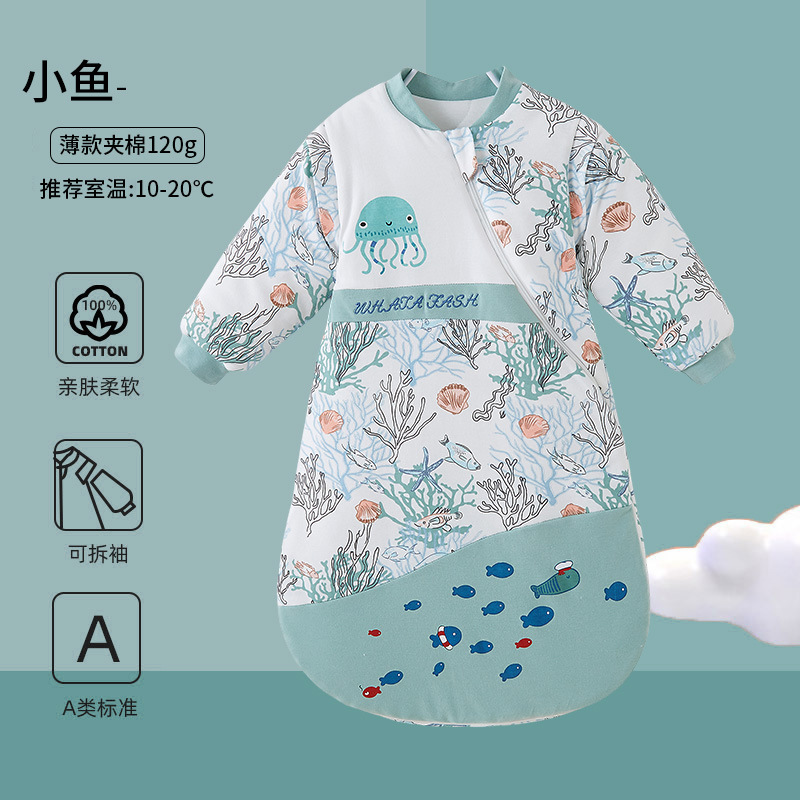 어린이용 두꺼운 아기 발차기 방지 이불, 순면 신생아 일체형 누빔 A급 겨울 유아 침낭, 가을 겨울용스토어 가기