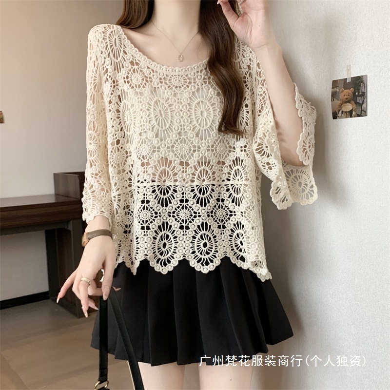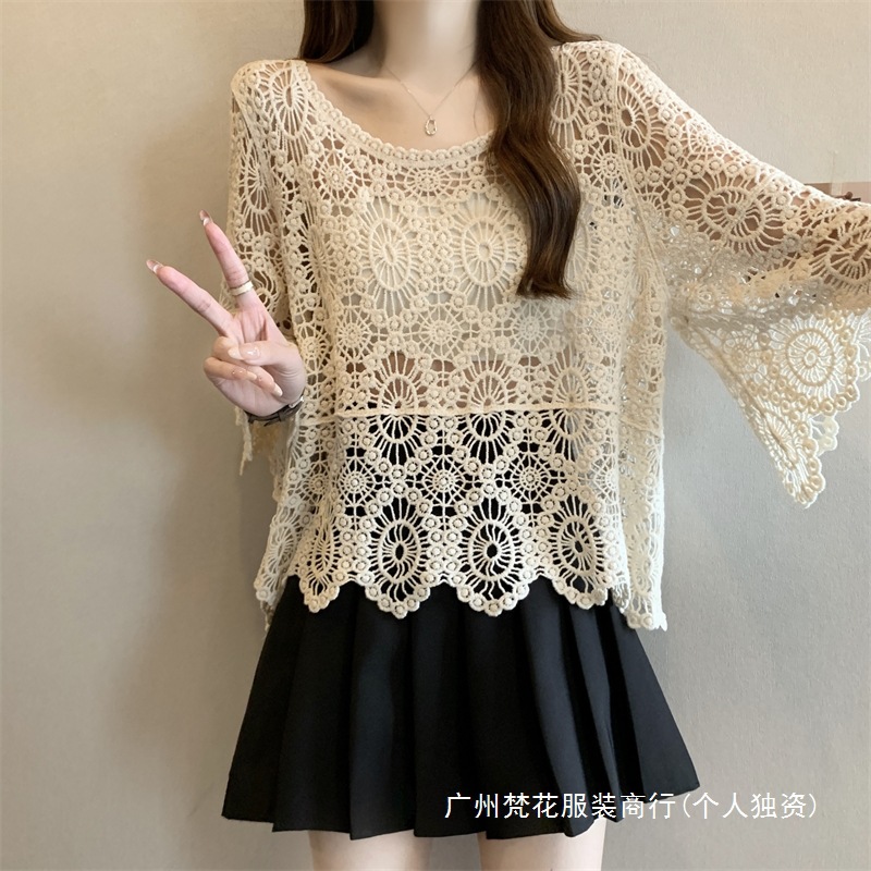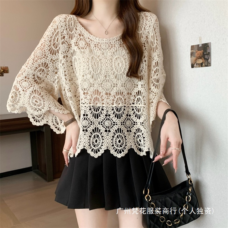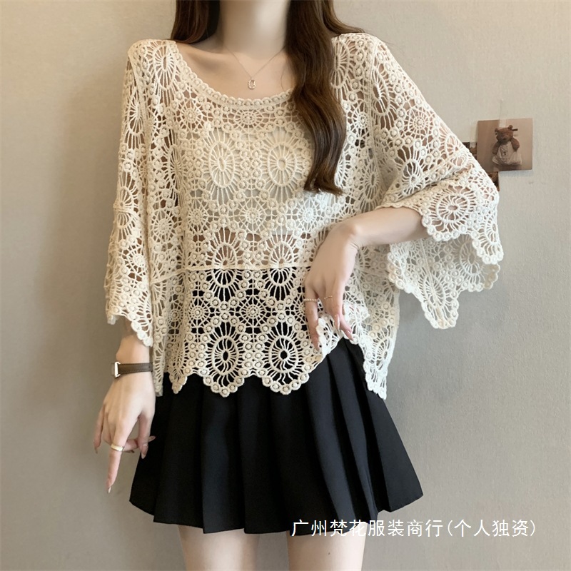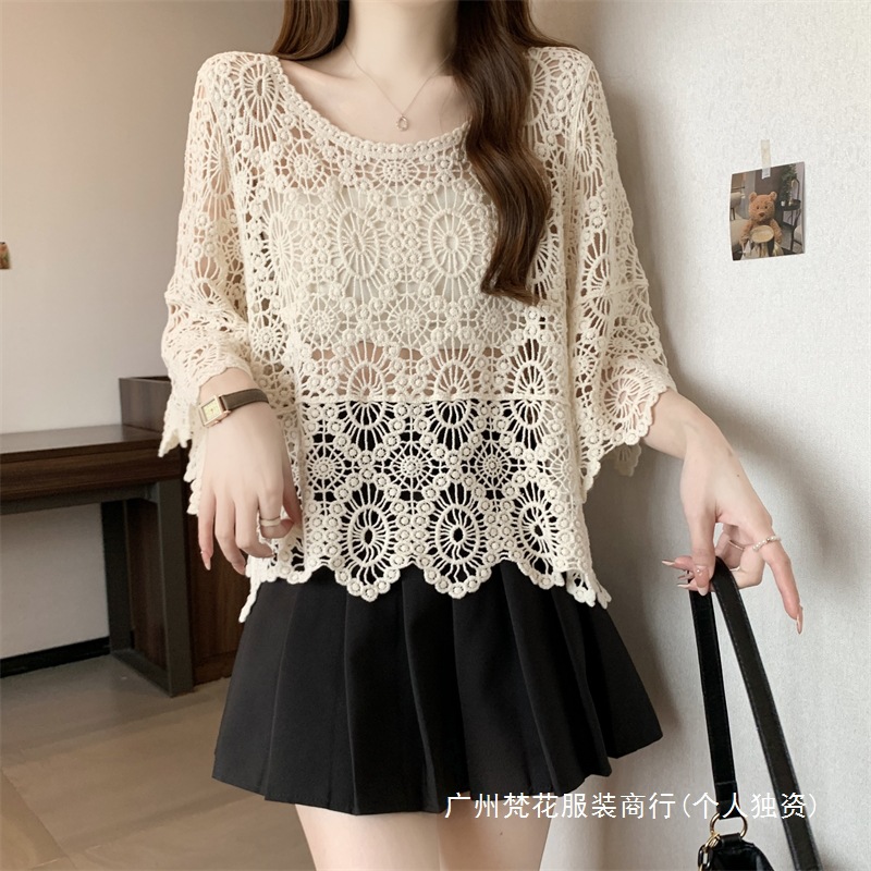 보헤미안 스타일 플러스 사이즈 크로 셰 뜨개질 여성 느슨한 풀오버 블라우스 빈 여름 올 매치 레이스 탑