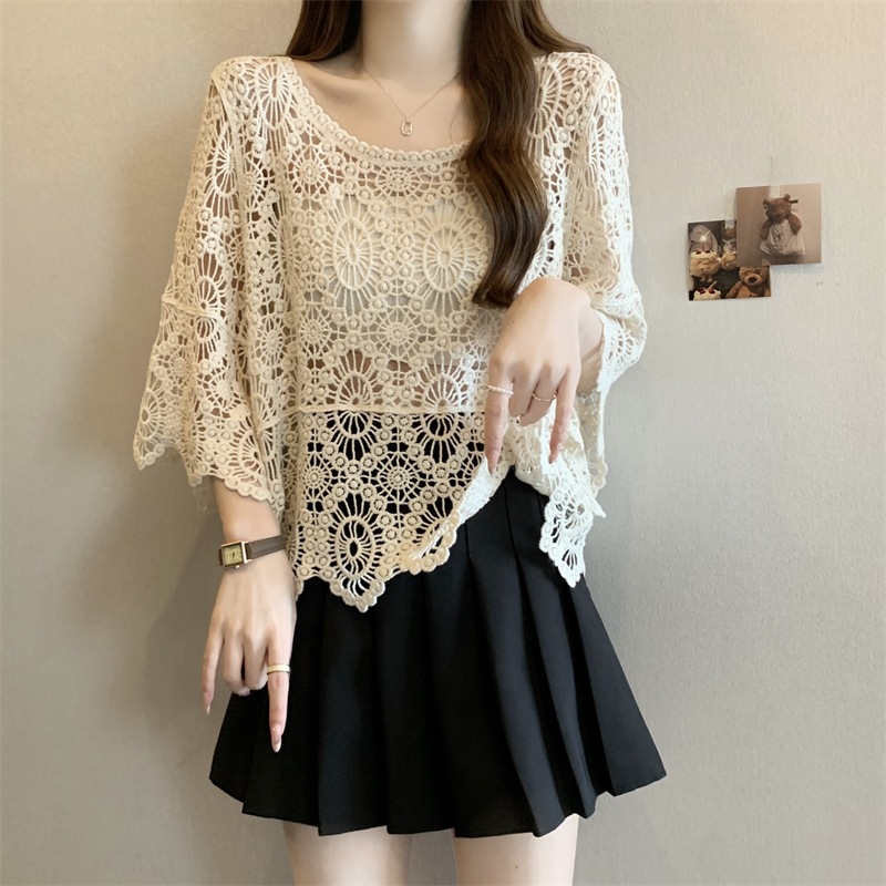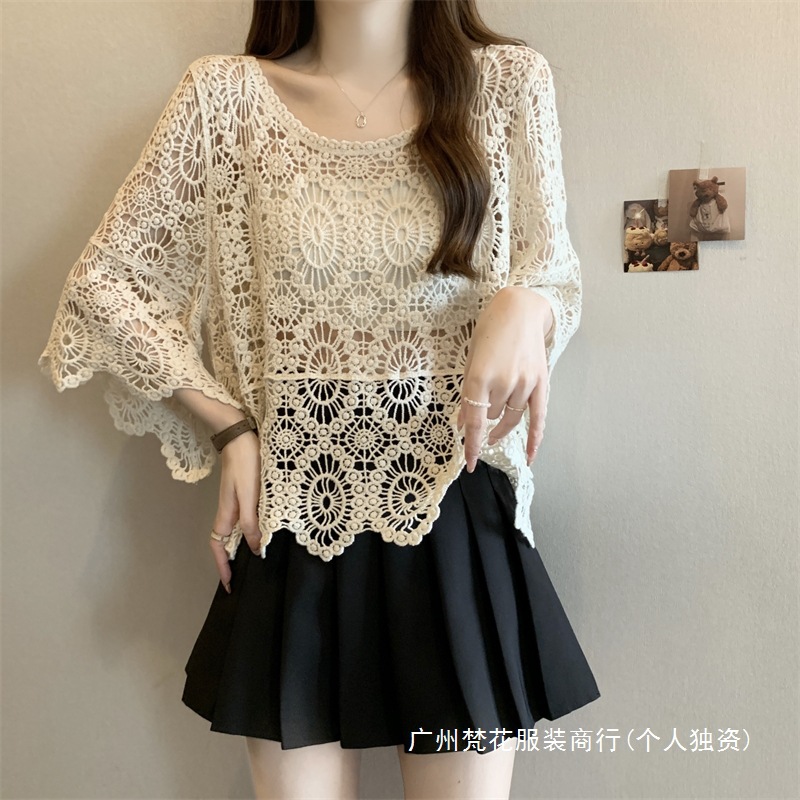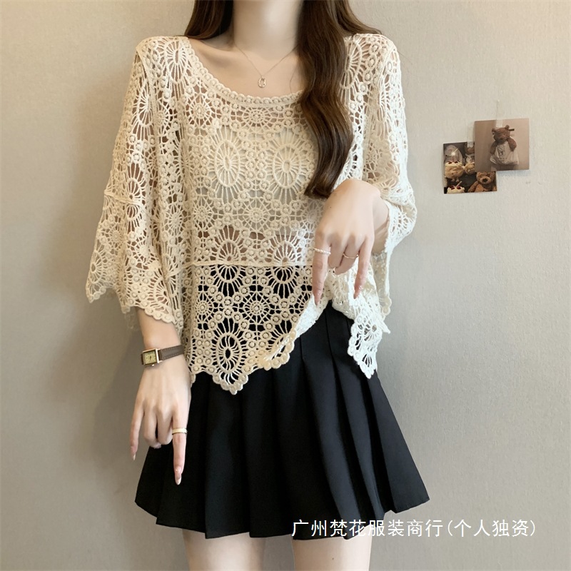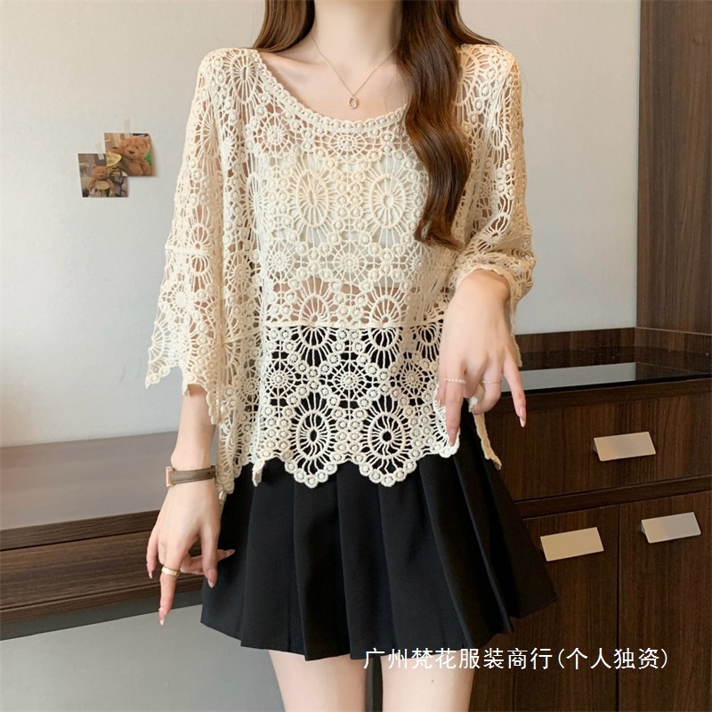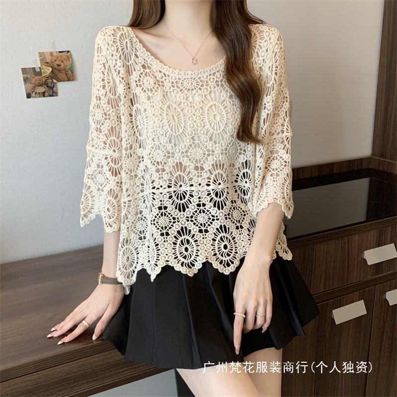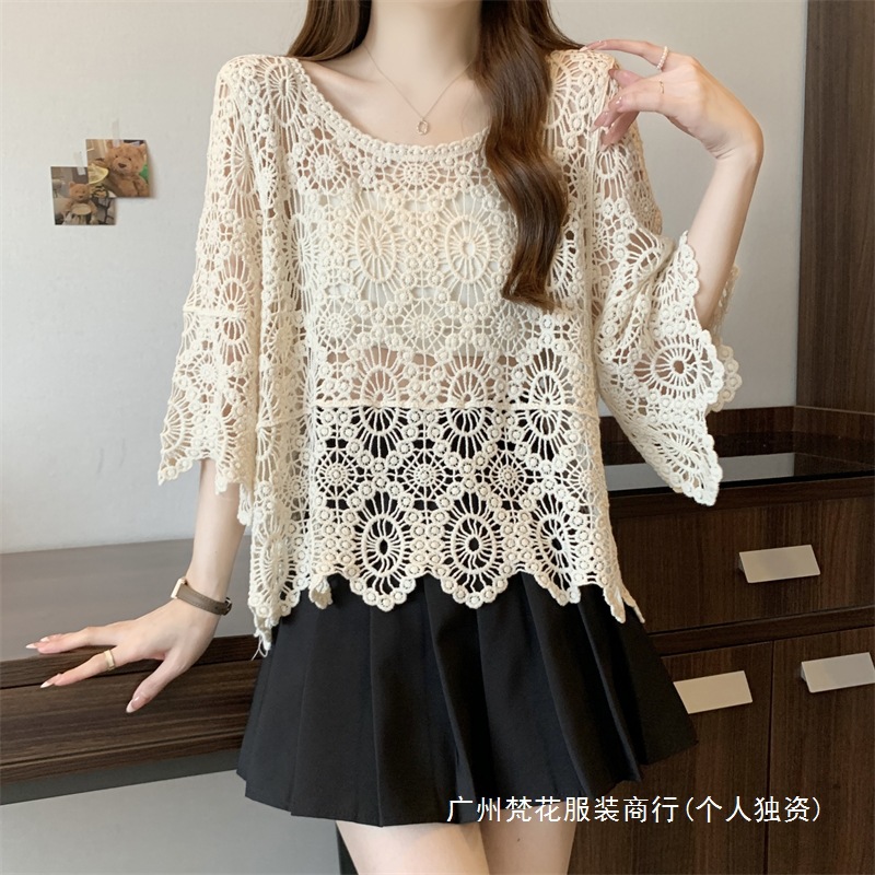 보헤미안 스타일 플러스 사이즈 크로 셰 뜨개질 여성 느슨한 풀오버 블라우스 빈 여름 올 매치 레이스 탑