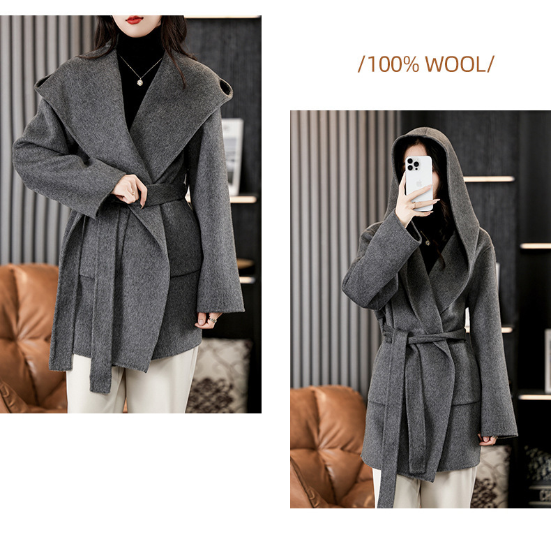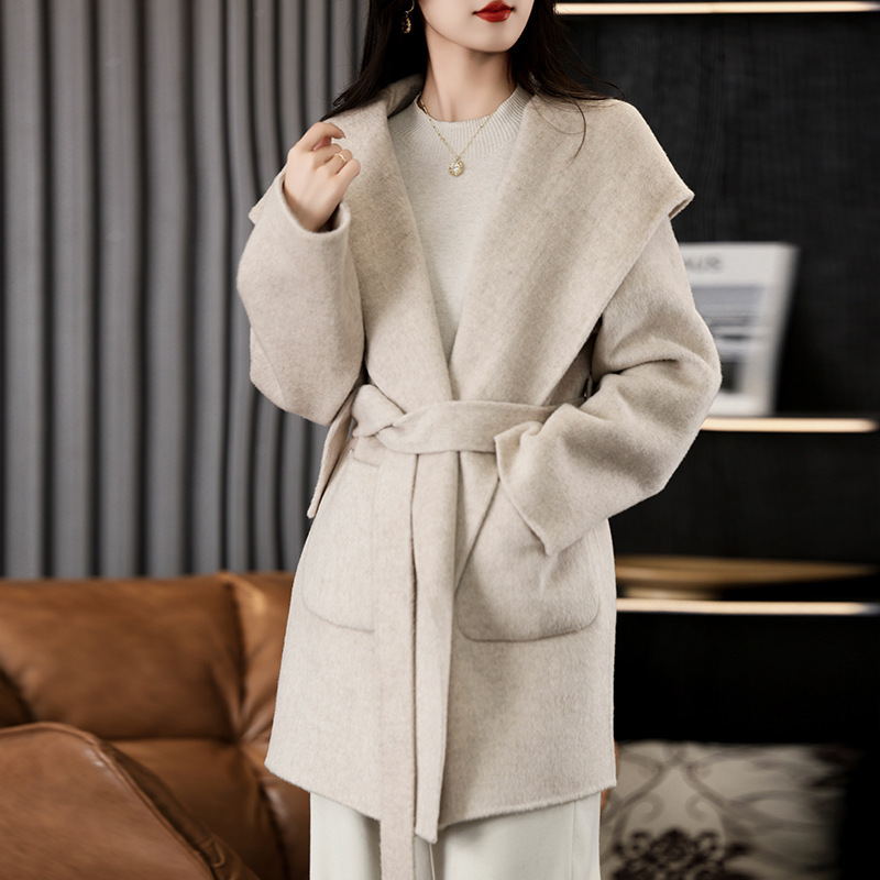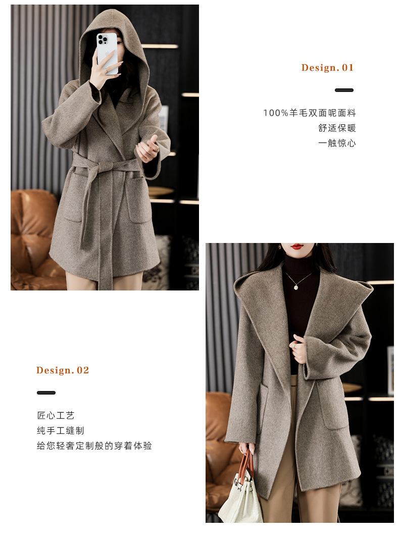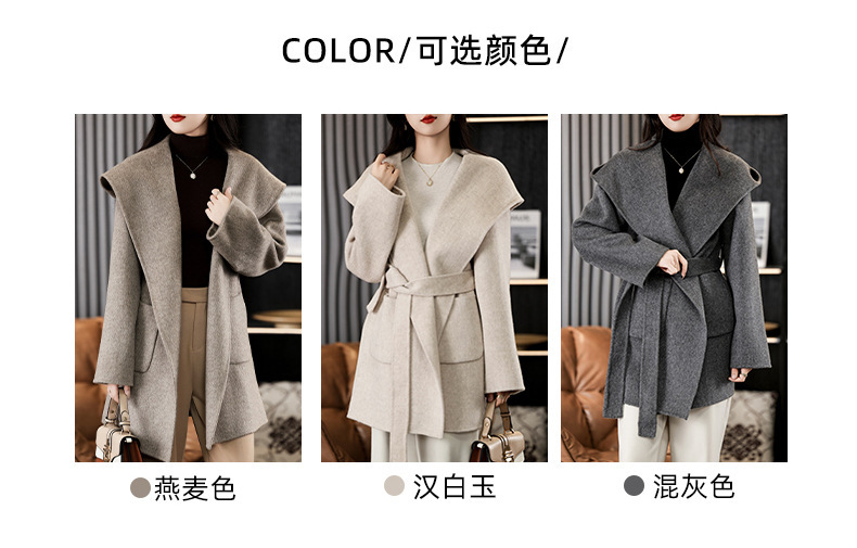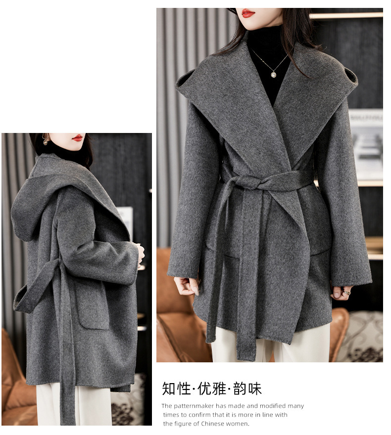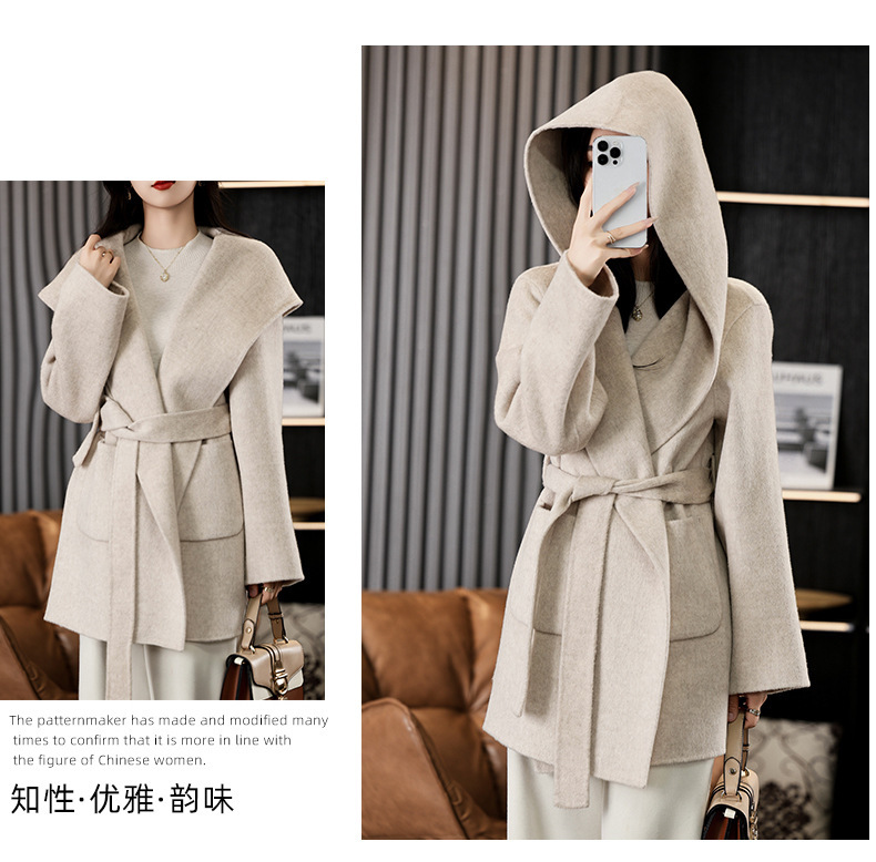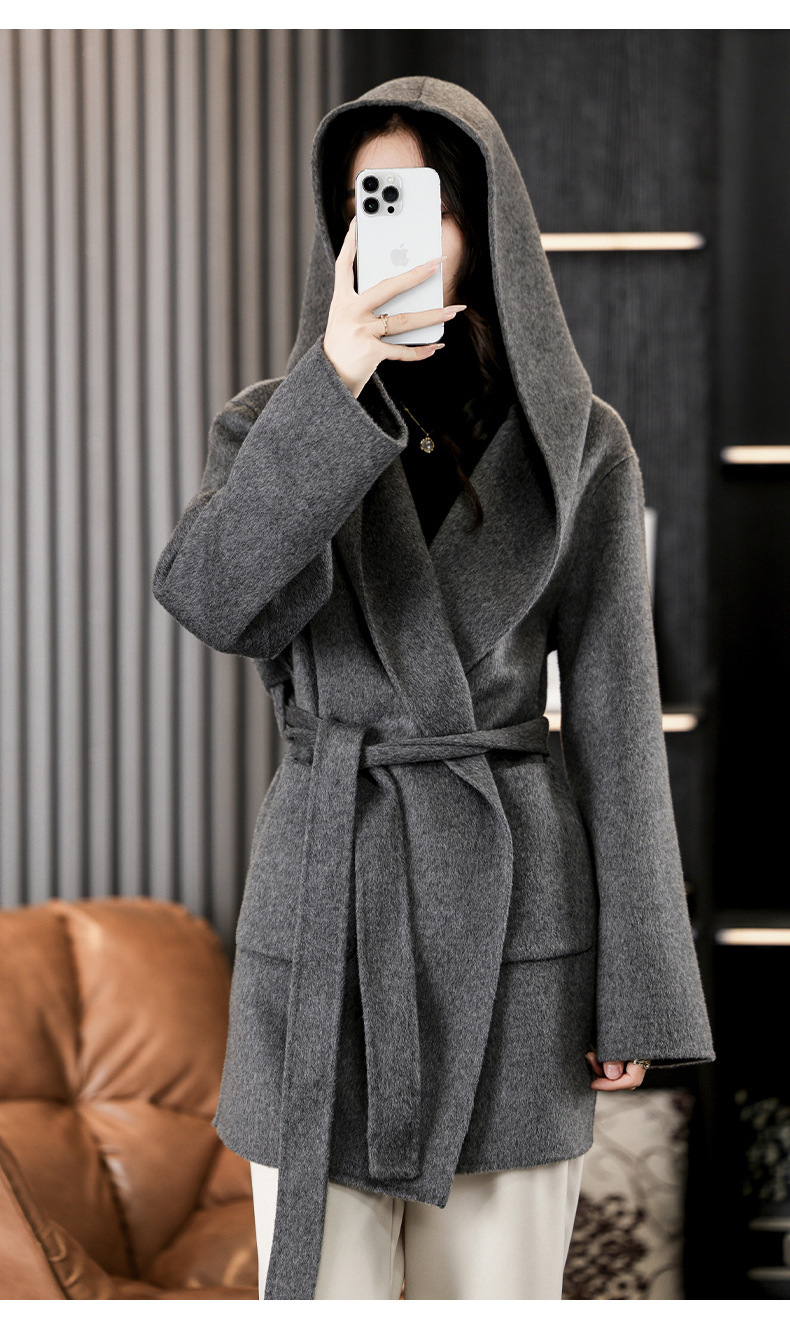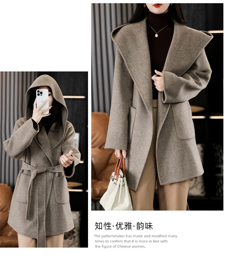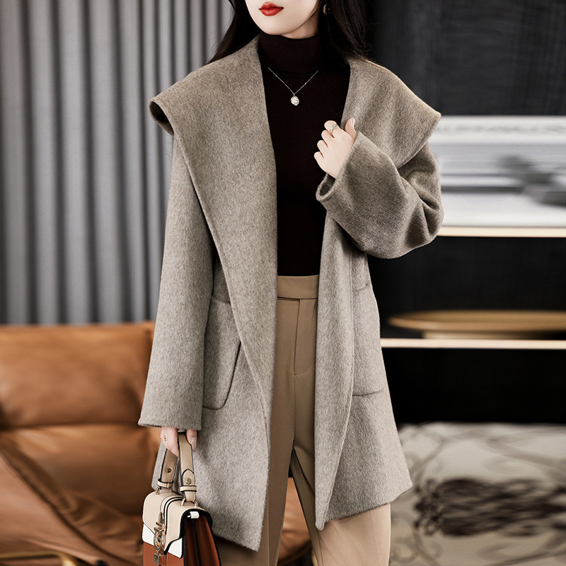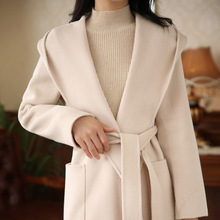 가을과 겨울 코트 여성의 새로운 양면 양모 작은 고급 적당한 긴 후드 모직 세트 재킷스토어 가기