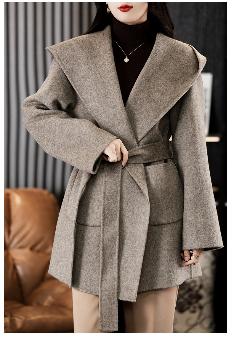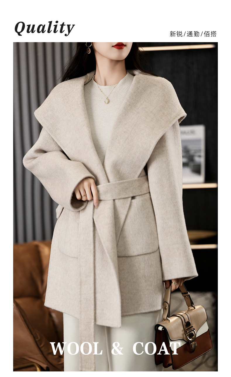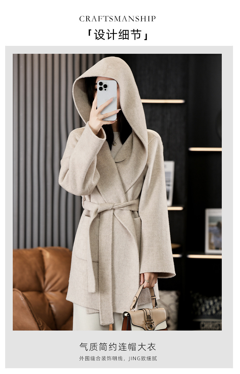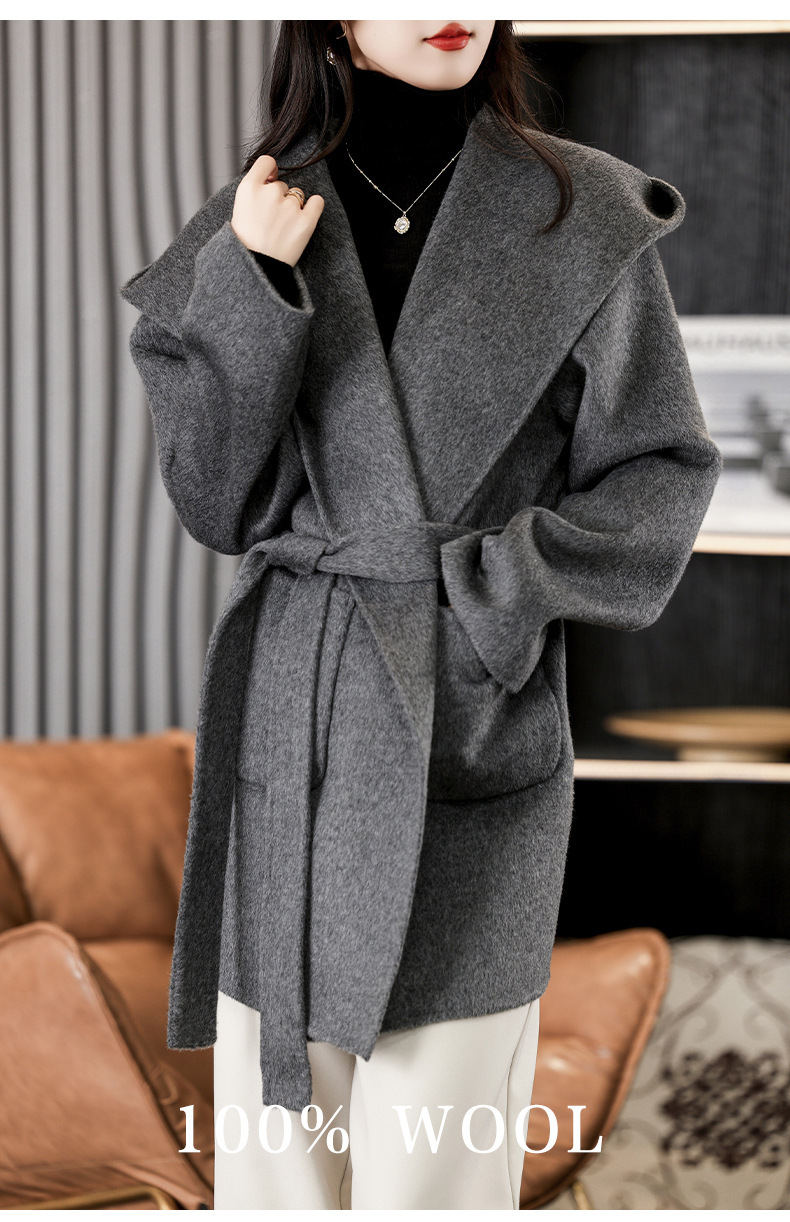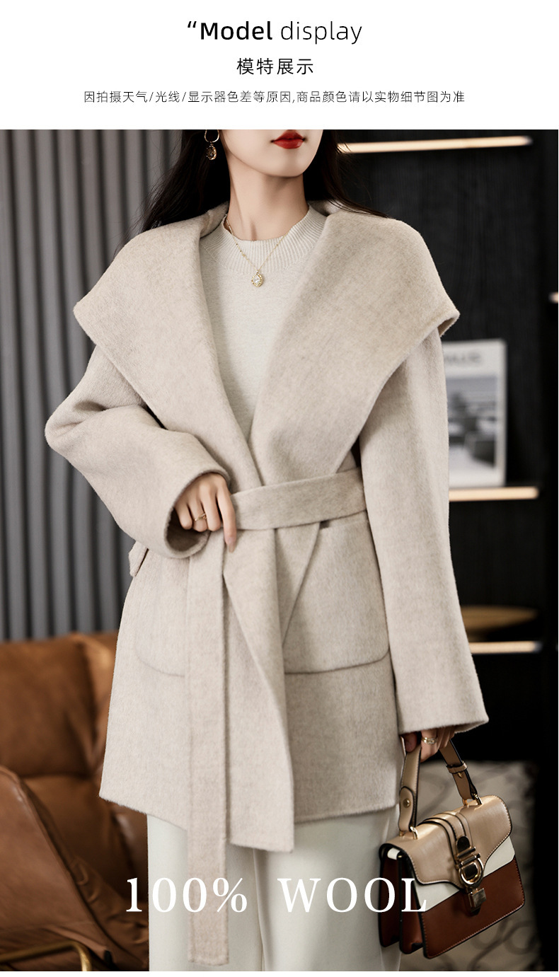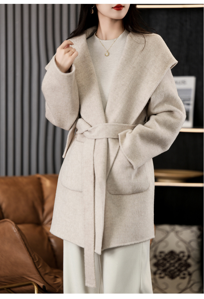 가을과 겨울 코트 여성의 새로운 양면 양모 작은 고급 적당한 긴 후드 모직 세트 재킷스토어 가기