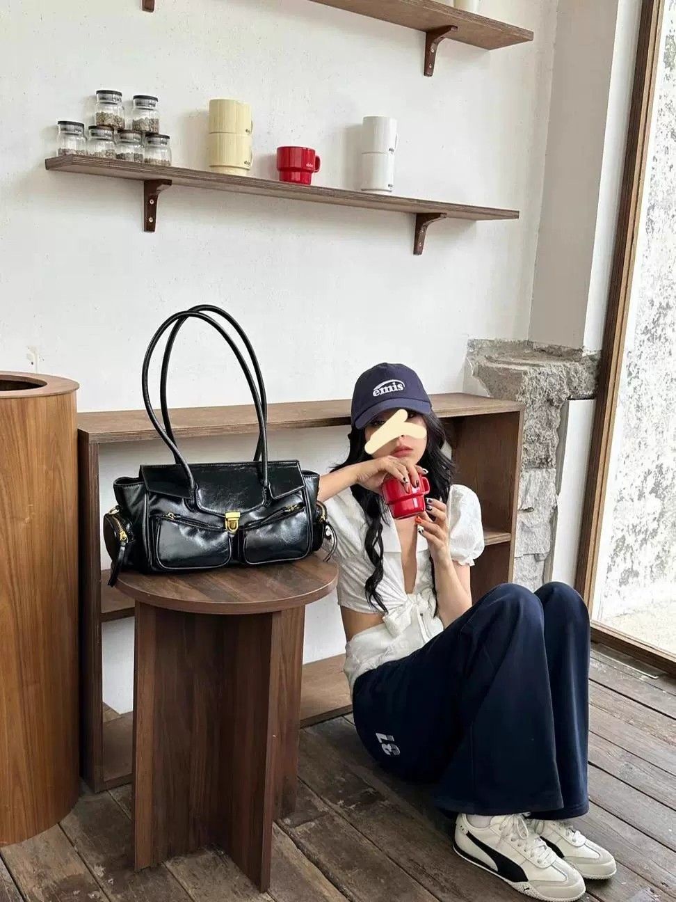 2024 새로운 높은 감각 뜨거운 소녀 휴대용 오토바이 가방 호보 서양식 통근 가방 패션 대용량 올 매치 가을과 겨울스토어 가기