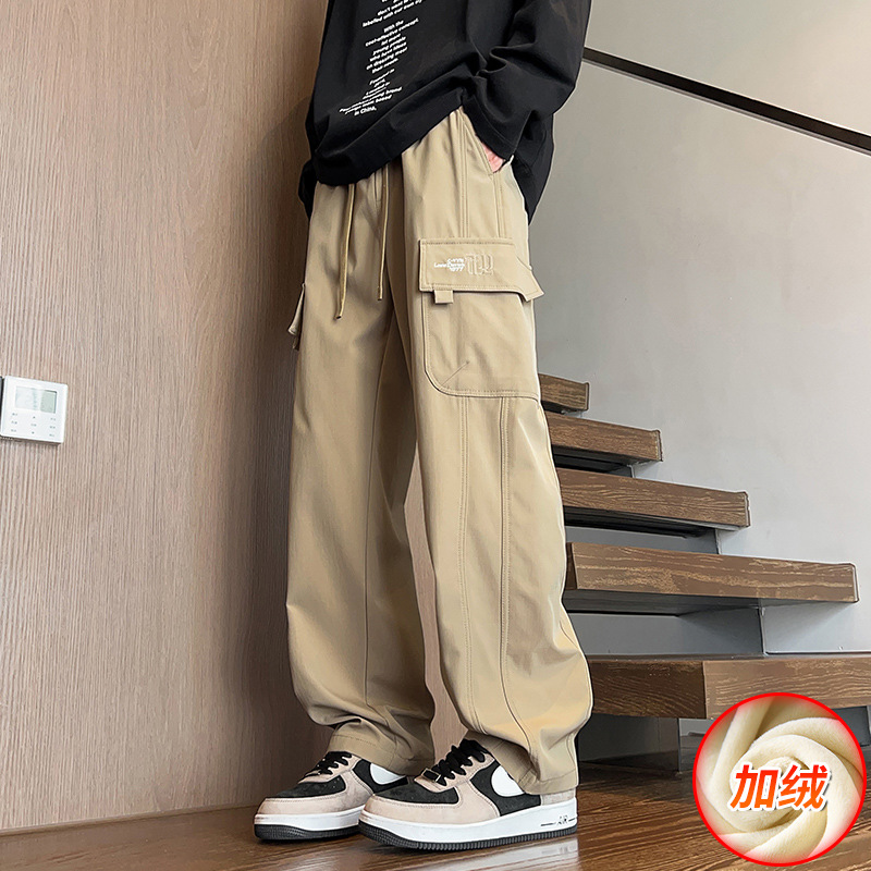 바지 남성 겨울 2024 새로운 청소년 스트레이트 따뜻한 패딩 벨벳 바지 남성 캐주얼 바지 가을과 겨울스토어 가기